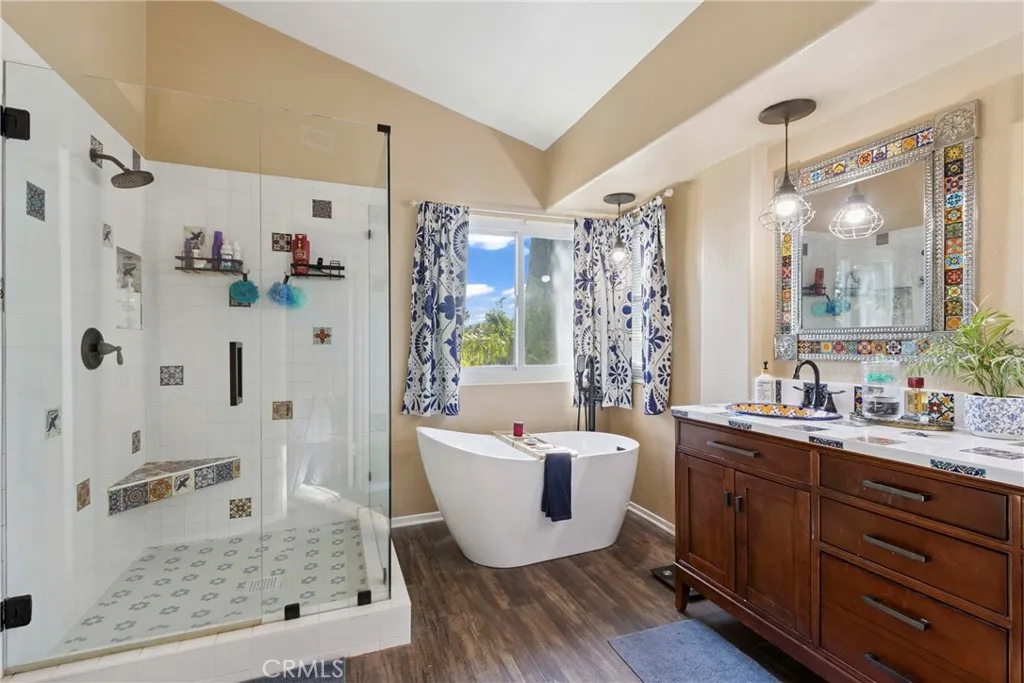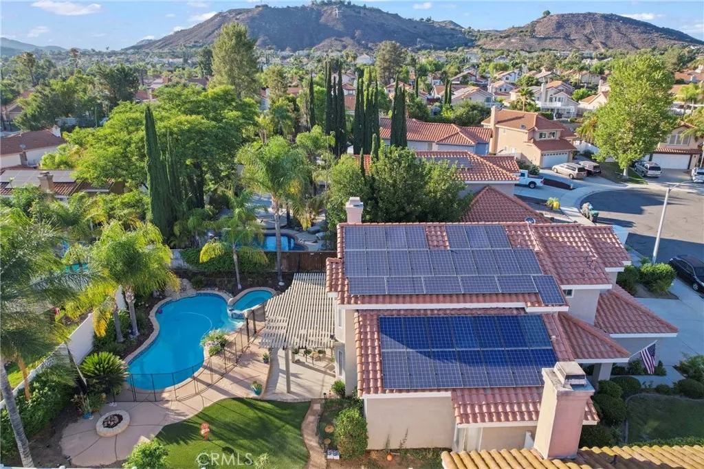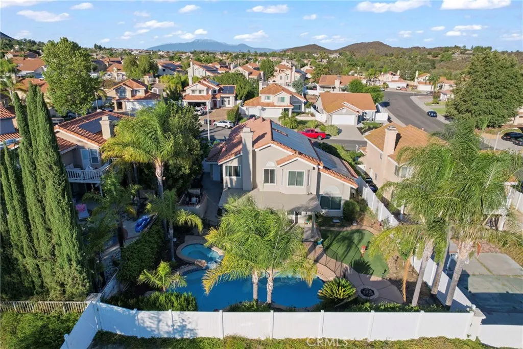 This beautifully upgraded, turnkey pool home nestled on a quiet cul-de-sac in central Murrieta offers no HOA and low taxes! The spacious 4-bedroom, 3-bath home includes a highly desirable downstairs bedroom with its own private entrance and adjacent full bath, perfect for guests or multi-generational living. Step inside to soaring ceilings and a light-filled formal living room. Continue through to the kitchen featuring granite countertops, white cabinetry, newer stainless steel appliances, and a casual dining nook, plus a separate formal dining room for gatherings. The kitchen opens to the inviting family room with a cozy fireplace and sliding glass doors that lead to a private backyard retreatcomplete with a resurfaced pool and spa, with new pool pump, new fence, new pool sweeper & new pool & spa lights. Backyard also includes a new alumawood patio cover, new turf lawn, firepit, and a variety of fruit trees including apricot, plum, apple, avocado, lemon, two orange trees, kumquat, and tangerine. Upstairs, youll find three additional bedrooms and 2 full baths, including the spacious primary suite with large windows, a ceiling fan, and a completely remodeled ensuite bathroom featuring a barn door, new walk-in shower, soaking tub, dual vanity, and updated counters. The primary suite also includes a generous walk-in closet. Additional upgrades throughout the home include crown molding downstairs, a whole house fan, new AC & HVAC system installed in July 2025, as well as new Anderson windows, updated ductwork, attic insulation, and a leased solar system for energy efficiency. A