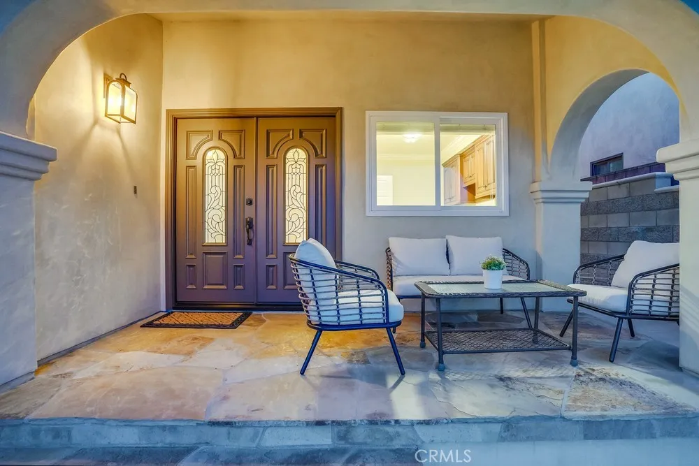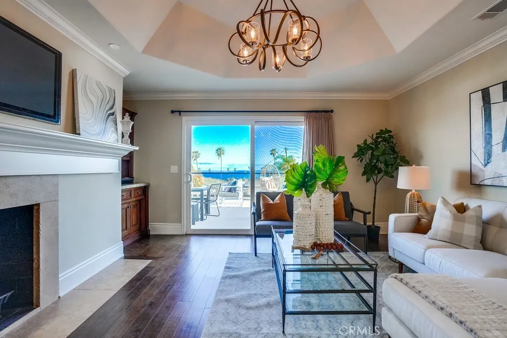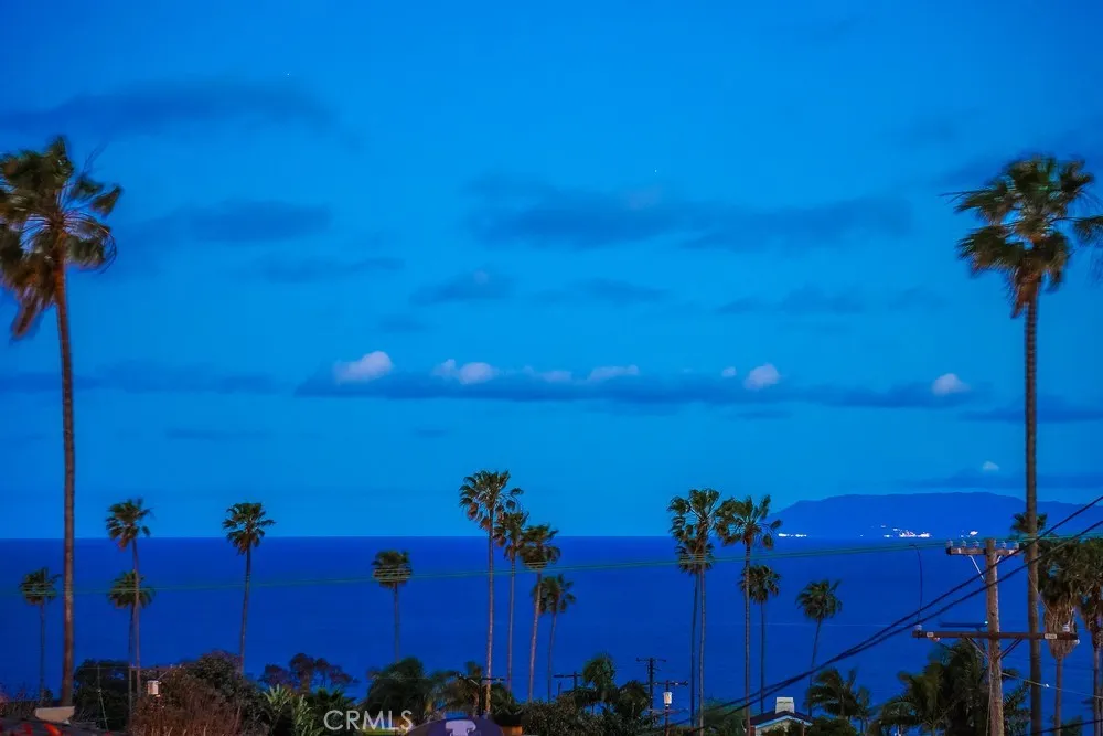 For the discerning buyer seeking a refined, low-maintenance coastal lifestyle, this Mediterranean-inspired villa delivers on every level. Nestled on a quiet cul-de-sac in the coveted Upper South Shores, the home enjoys unobstructed ocean and Catalina Island views from nearly every main living space. Cool afternoon breezes complete the relaxed, elevated feel of this special property. Completely reimagined with a focus on quality, this home offers timeless sophistication. Its not for someone chasing fleeting trendsno stark whites or grays here. Instead, rich natural finishes and craftsmanship take center stage. Designed for those who value elegance and ease over excess outdoor space, this residence is effortless coastal living at its finest. Curb appeal is instant. A wide stone staircase leads through lush, manicured landscaping to a covered front porch trimmed in natural stone. Smooth stucco, a red tile roof, and patina copper accents complete the classic Mediterranean exterior. Through the double-door entry, youre welcomed by soaring 10-foot ceilings and a large coat closet in the foyer. The formal living room features vaulted ceilings, a natural stone fireplace, built-in bookshelf and a large picture window showcasing panoramic views. An arched opening leads into the formal dining area and the upgraded kitchen, outfitted with custom wood cabinetry, granite countertops, walk-in pantry, and a travertine backsplash. Stainless steel appliances include a six-burner cooktop, counter-depth refrigerator, double oven, dishwasher, and custom hood. The adjacent family room offers a s