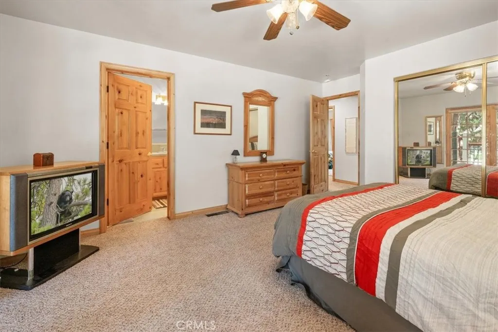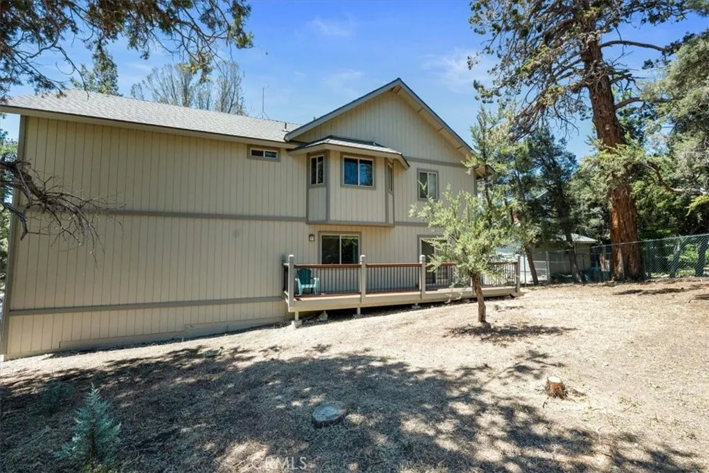 Welcome to this beautiful 4-bedroom, 3.5-bathroom home located in the peaceful and highly desirable Whispering Forest neighborhood of Big Bear City. Just minutes from the lake, ski resorts, hiking and biking trails, shopping, and dining, this home offers the perfect blend of quiet mountain living and convenient access to everything Big Bear has to offer. Step inside to find a spacious and open layout featuring a large great roomperfect for relaxing or entertaining family and friends. The expansive kitchen is equipped with ample counter space, a breakfast bar, and plenty of storage, making meal prep a breeze. Two of the bedrooms are primary suites, offering privacy and comfort for multi-generational living or guest accommodations. With lots of storage throughout, an attached 2-car garage, multi-level decks, and a fully fenced backyard, this home is both functional and family-friendly. Whether you're enjoying cozy evenings by the fire, hosting holiday gatherings, or using the space as a retreat for guests, this home offers flexibility and warmth. Ideal as a full-time residence, weekend getaway, or vacation rental, this well-maintained home is move-in ready and waiting for you to make it your own. Dont miss your chance to own a piece of Big Bear paradise in one of its most tranquil neighborhoods.
