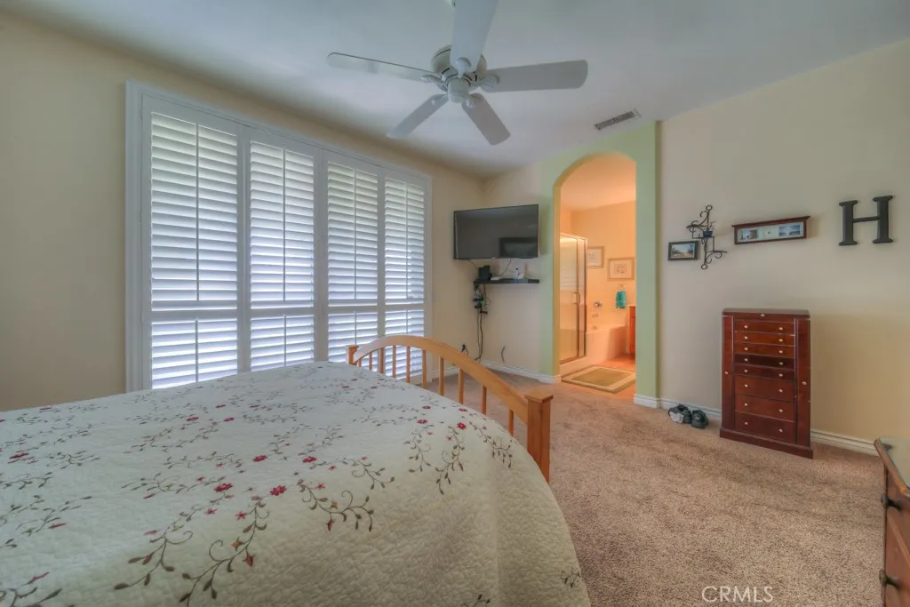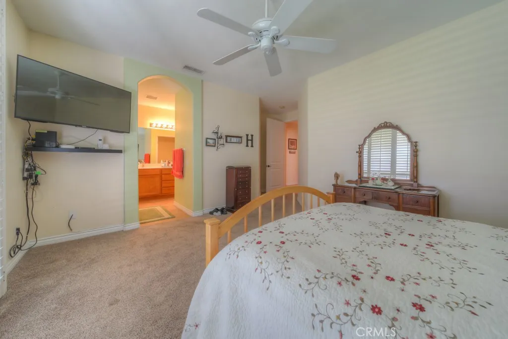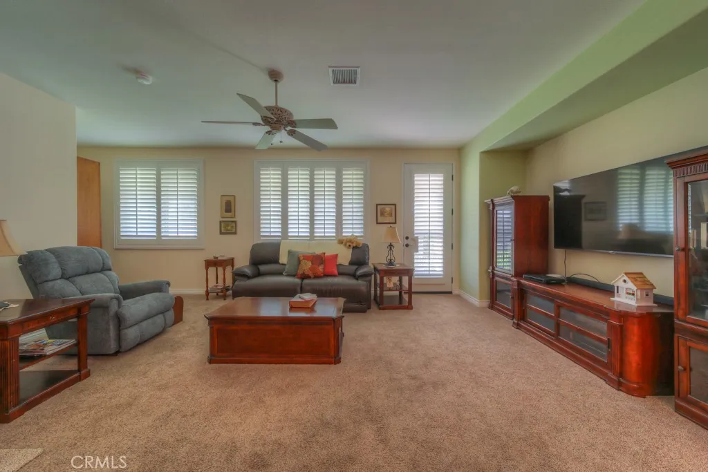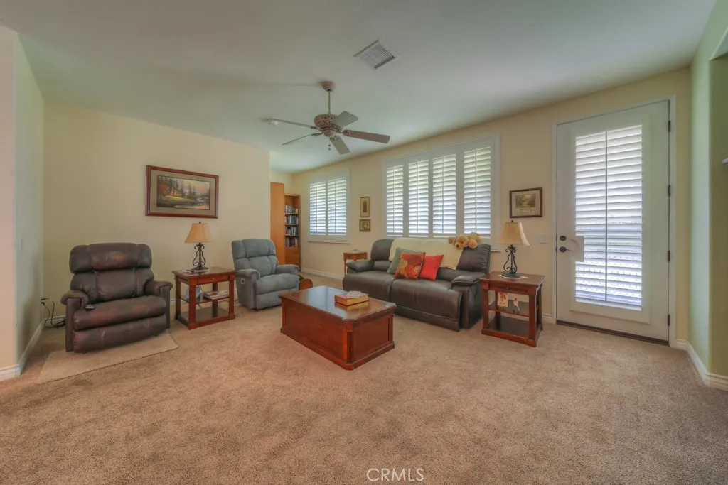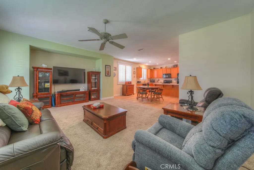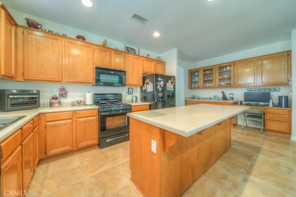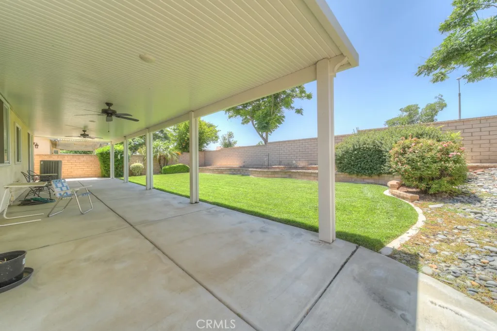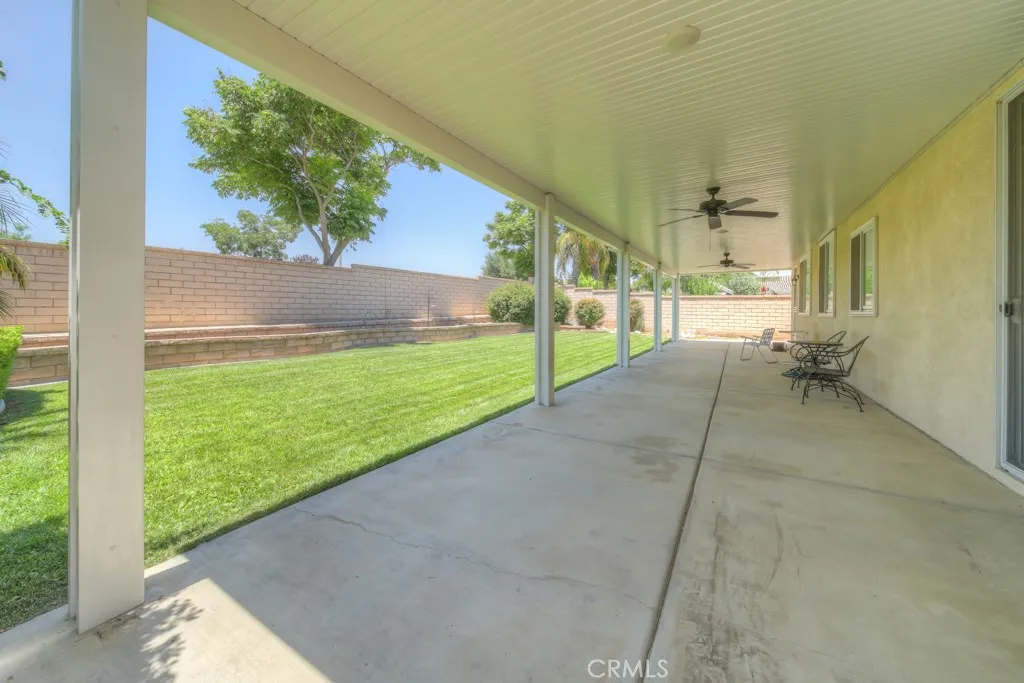 Welcome home to this spacious 3 bedroom, 2 bath, 2119 sq feet, single story home with a 3 car garage located in Menifee, with no Home Owners Association! As you walk into the home, the formal living and dining room are on the right. Next is the kitchen to the right. There is a large island with cabinets and seating, storage galore, walk in pantry and built in desk. All open to the eat in kitchen area and family room. The primary bedroom is big with sliding doors to the real grass landscaped back yard and covered patio with a ceiling fan. Back inside the primary bathroom has shower, bathtub and double sinks. The walk in closet seems endless! The two secondary bedrooms are a good size and the secondary bathroom has dual sinks. The indoor laundry has a deep sink. This house has been very well maintained. Come check it out, you won't be disappointed!