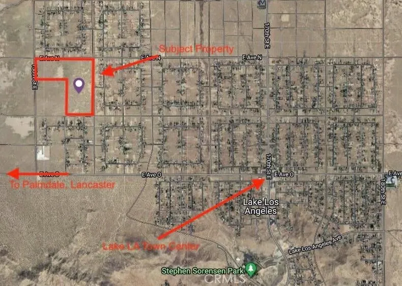 Prime residential development site! 110 acres of flat, in-fill land in the Lake LA area of the Antelope Valley. One of the few large, undivided land parcels within Lake LA. This is NOT 110 acres in the middle of the desert. Instead, this substantial property is nestled within an established neighborhood with utilities and paved street frontage. The street frontage is present on all 4 sides, with existing housing tracts across the street on 3 sides. Water, electricity, and gas services are all available at the street. Home values are strong in Lake LA, with existing homes in the area selling in the $400k+ range. This 110-acre property can be purchased for the price of less than 2 typical homes in the area. This property also sold for $1.2m in 2007. As such, this property is a tremendous value with a wide variety of potential uses. The current zoning is "light agricultural", with 2-acre lot minimums. Thus, per an engineer's preliminary feasibility report, the property can be subdivided into approximately 34 2-acre lots without any zone changes. Other possible uses within the current zoning include building a large ranch w/custom home, solar farm, or a mobile home park. With a zone change to 1-acre lot minimums, which would put it in line with the rest of Lake LA, the property can be subdivided into approximately 67 1-acre lots. Developers may be able to build a subdivision of new construction ranch homes that can sell for $400-500k+ or build a subdivision of "Build to Rent" homes with ADU's and Junior ADU's to double or even triple the density. Utilizing these ADU laws, along