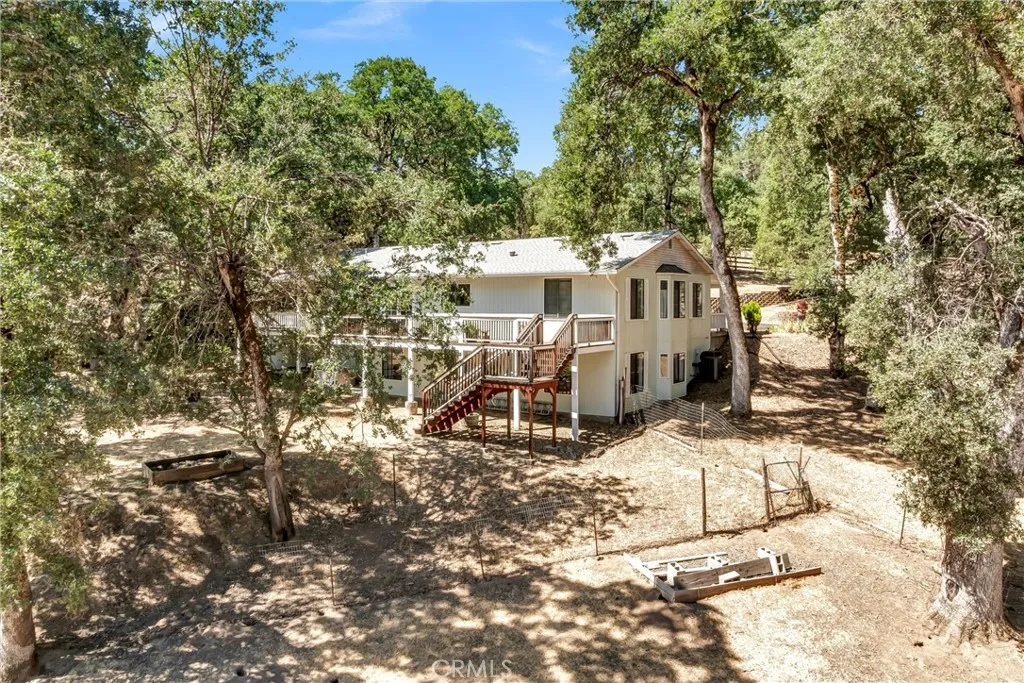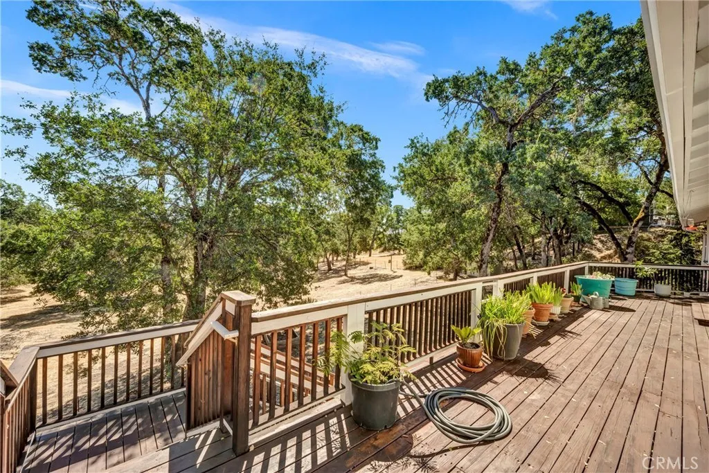 Oak-Studded Retreat on Private Road with a Lake View and 2.39 Acres in Lakeport ~ Welcome to your own peaceful escape nestled in one of Lakeports most desirable areas, just minutes from town yet offering the space, privacy, and beauty of country living. This 3 bedroom, 2.5 bath home spans 2,682 sq ft and sits on a fully fenced and gated 2.39-acre parcel adorned with majestic oak trees. Take in the lake view from the expansive redwood deck, partially covered for year-round enjoyment, perfect for outdoor dining, entertaining, or simply relaxing in nature. Inside, the home features fresh interior and exterior paint, vinyl plank flooring in the living room, tile in the kitchen and baths, and carpeted bedrooms for comfort. The main level offers a spacious living room with a cozy Vermont Castings wood stove, a bright kitchen with adjacent dining area, two bedrooms, a full bath, and a convenient half bath off the garage. Downstairs, discover a large family room, additional bedroom, full bathroom, and a laundry room, ideal for multi-generational living, guests, or a private retreat. The Softub hot tub is included, ready for you to soak under the stars. Enjoy a Trane brand heat pump for central heat and air conditioning, a whole house fan, and a reliable well water system with 2,500-gallon above-ground storage tank. The attached 2-car garage features a bonus hobby room with a door leading to the deck, and still provides room to park two cars, perfect for a home office, art studio, or workout space. Plus, an expansive paved parking area for all your toys and ample under-house storage