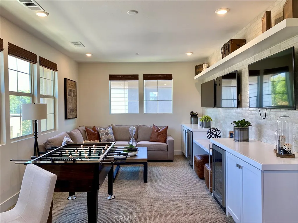 Don't miss this rare opportunity to own a beautiful former model home in 24-hour guard gated resort community of Altair. This model home is a detached single family house and the land use is condo. It has luxury upgrades throughout and is close to brand new condition. This must-see house is an ideal one that everyone loves. It comes with smart home features electric roller shields. First floor includes a convenient bedroom and a full bathroom. Second floor loft has a build-in bar comes with 2 wine coolers and that area can be converted to a 2nd family room, office or media zone with ceiling speaks installed. Outdoor retreats with covered California room with fireplace. Backyard has water feature design with three fountains and a sitting area with a unique design ground fire pit. Property is walking distance to clubhouse and is located just across street from top rated Portola high school.