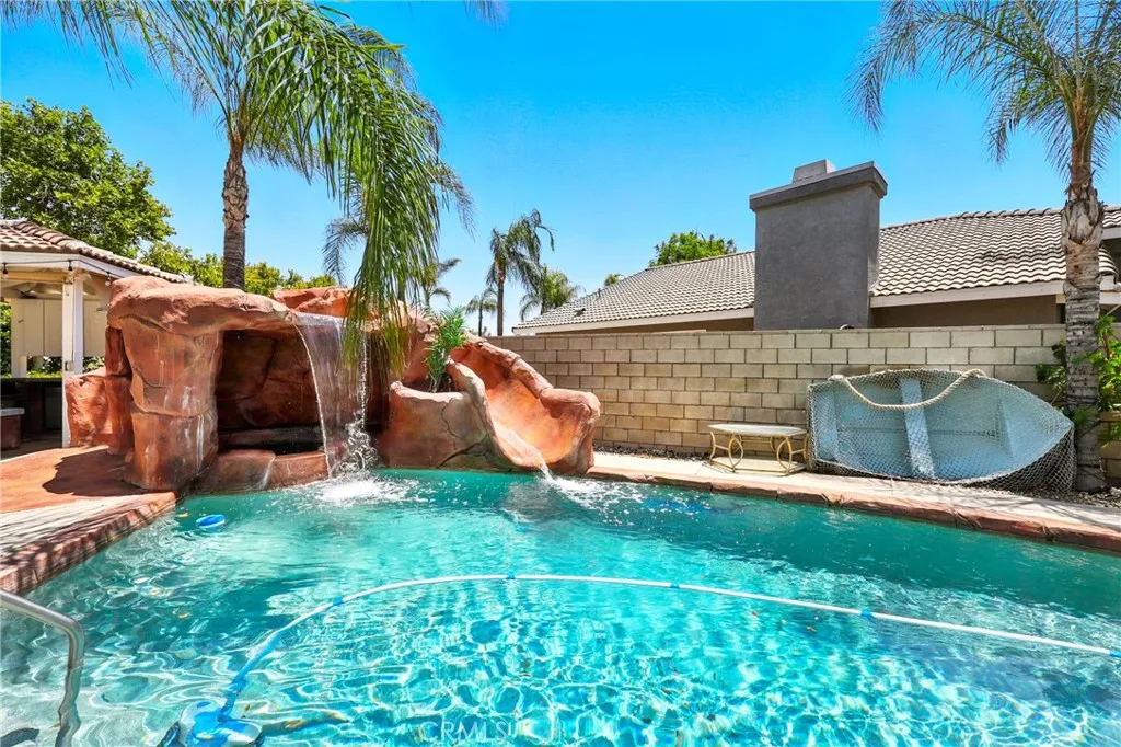 This beautifully updated 4-bedroom, 3-bathroom home has 1,898 sq ft of thoughtfully designed living space on a 7,841 sq ft lot in a cul-de-sac. The main level features a bright living room, dining area, powder room, and a centrally located kitchen that opens to the family room with a modern tiled fireplace. Fresh interior paint and laminate flooring run throughout the first floor, creating a clean, cohesive look. Upstairs are four spacious bedrooms, including a primary suite with a private remodeled bathroom. Three bedrooms feature new carpet, one has laminate flooring, and all have been freshly painted. The additional upstairs bathrooms have been stylishly updated with tile flooring. The backyard is a private retreat, complete with a heated pool, slide, waterfall, and spa. A covered gazebo with built-in BBQ, sink, and prep area makes outdoor entertaining effortless. Additional highlights include dual-pane windows, storage sheds, a freshly painted exterior, and a 3-car garage with epoxy flooring and built-in shelving. This home has extensive upgrades throughout, modern comfort, and exceptional outdoor living. Dont miss this opportunity to own this home.