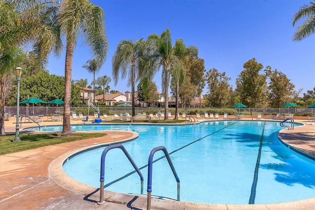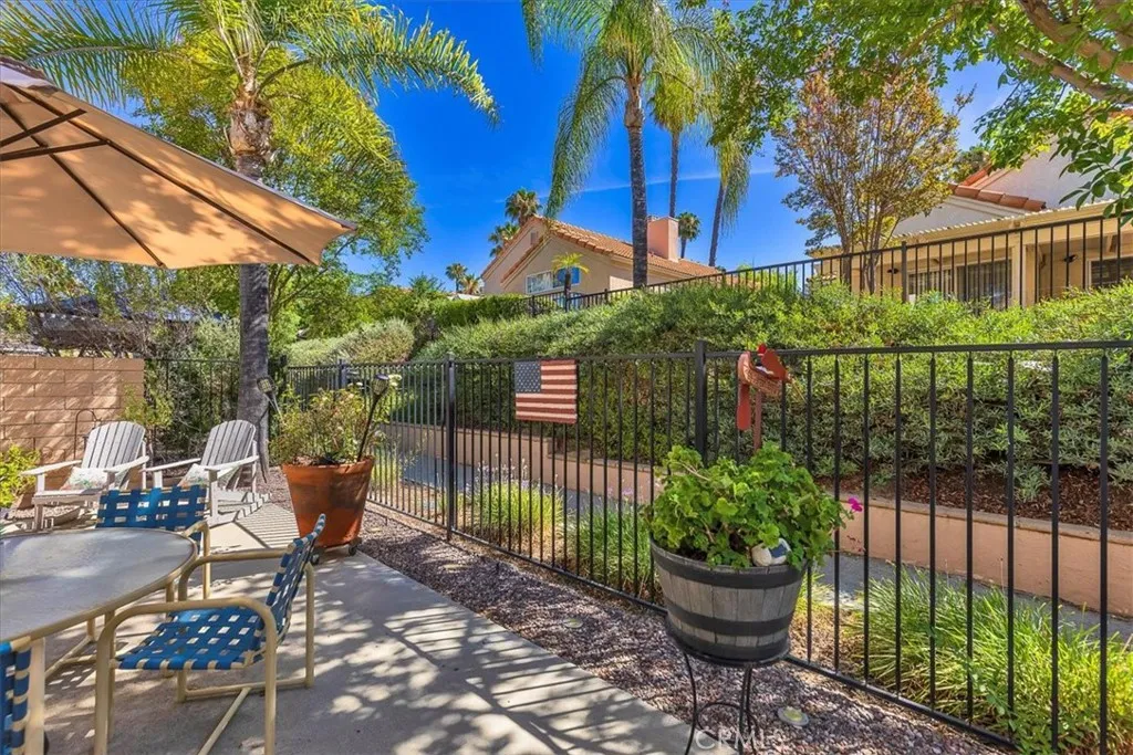 Move-in ready and beautifully maintained, this charming home boasts a bright interior with vaulted ceilings! Located in the highly desirable 55+ gated community of The Colony, this truly TURN-KEY, single-story offers residence a rare opportunity to experience upscale, active, adult living in one of Americas safest cities. Thoughtfully designed for comfort and entertainment, the home features 2 bedrooms, 2 updated bathrooms, a spacious living room, with a bright and airy atmosphere throughout. Upon entry, youll be greeted by a large and inviting gated courtyard leading to the front door. The cozy living area features a fireplace, creating a perfect spot for relaxation. The updated kitchen is equipped with modern appliances, new cabinetry, sleek counter-tops and a convenient breakfast nook. Wood tile flooring throughout adds both style and durability. The primary suite offers a private retreat with new windows and carpet. The updated en-suite bathroom is complete with a shower and dual sinks. The additional bedroom is generously sized and share a well-appointed updated second bathroom. The home features a two-car attached garage and a private backyard space with new iron fencing and gate leading to a walking path. Residents of The Colony enjoy access to pickleball, tennis, bocce ball, a sparkling pool and spa, and a scenic golf course that winds through the community. Dont miss this opportunity to live in one of the areas most desirable 55+ neighborhoods!