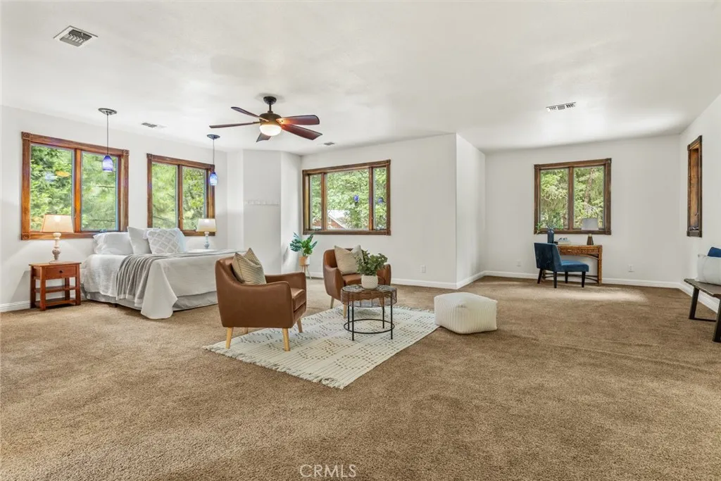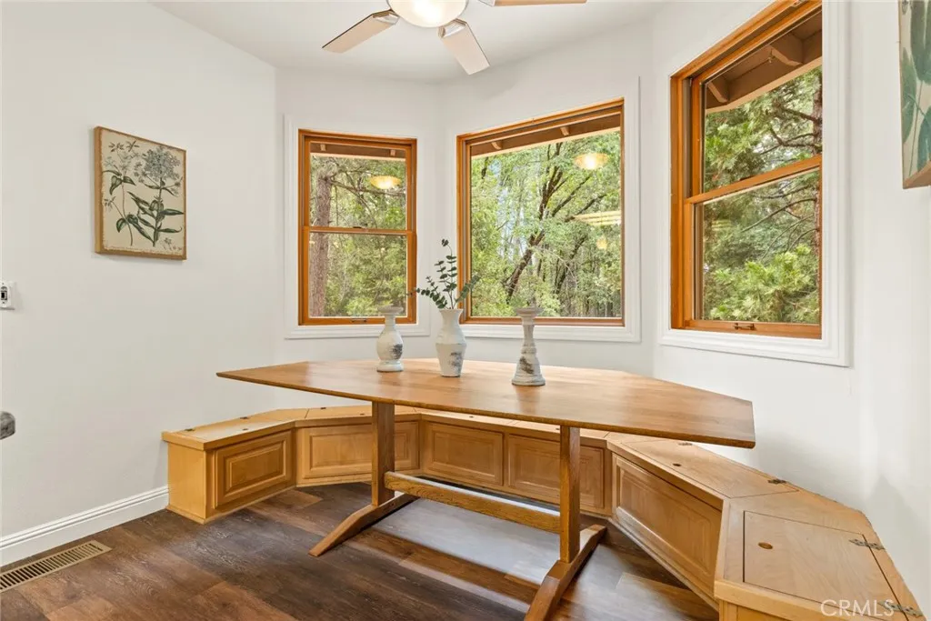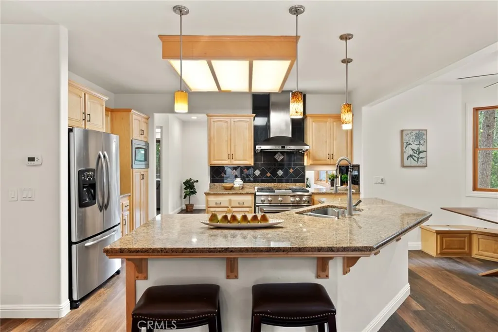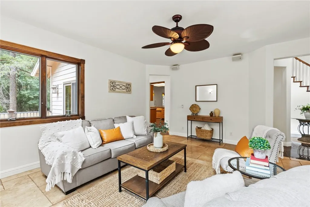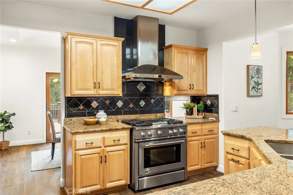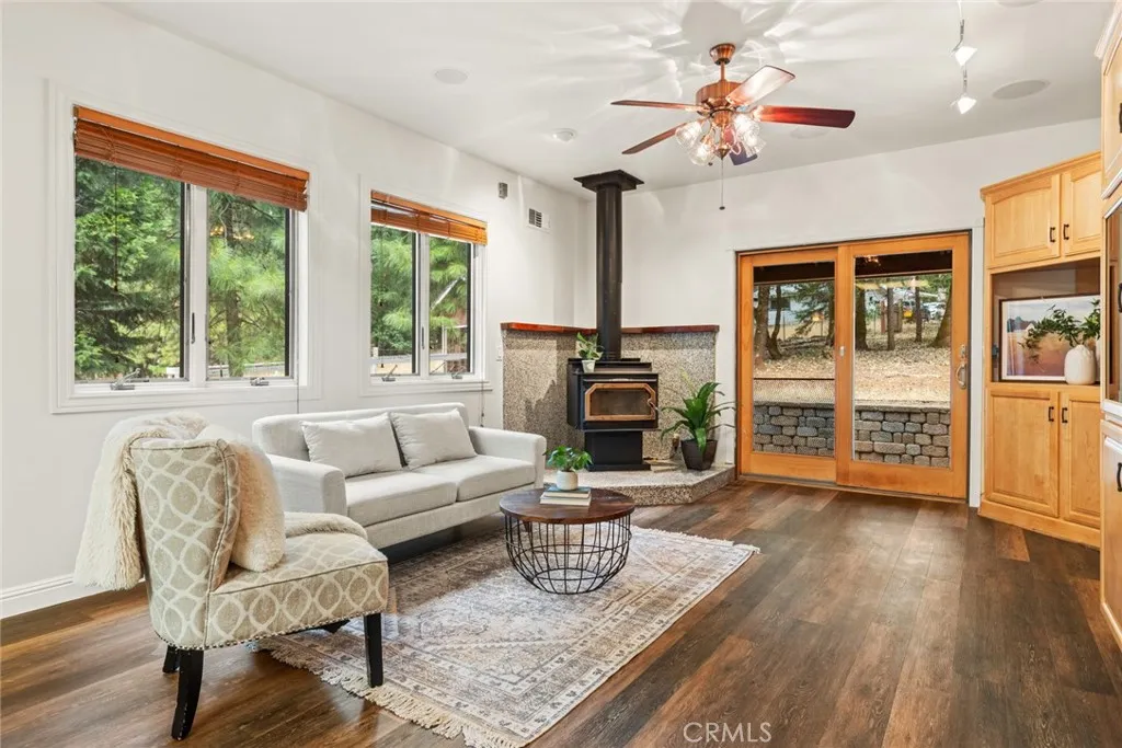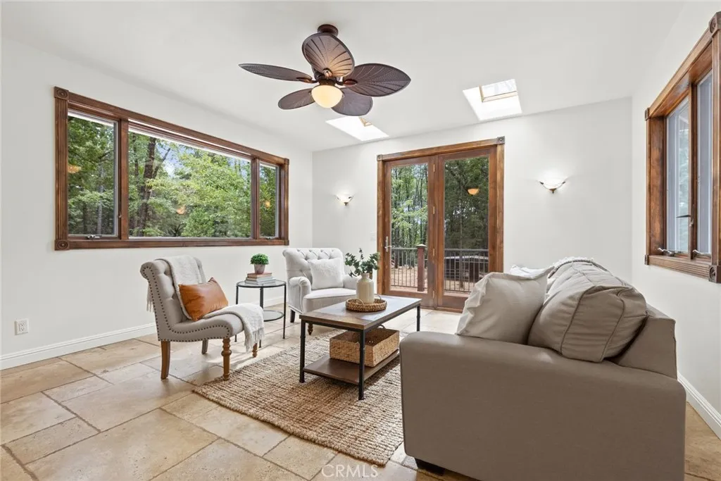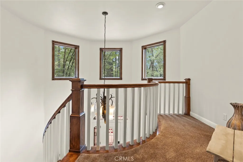 Welcome home to your beautiful mountain retreat on 5 acres! This serene horse property is set back from the road with a private gate, huge stamped concrete driveway and grand stone columns welcoming you to this beautiful custom home. Inside you'll find a soaring entryway with a beautiful chandelier, spiral staircase and a tile inlay compass rose making you feel that you have finally arrived home. This property was designed to be a sanctuary inside and out, with so much space and light throughout. The front living area off the entryway offers numerous windows with endless views of trees. The cozy family room off the kitchen has a wood-burning stove, built-ins, wine fridge, wet bar area and slider access to a back patio area. You'll love preparing meals in the updated kitchen with gorgeous granite countertops, custom cabinetry, stainless steel appliances and lovely tile backsplash. The adorable breakfast nook off the kitchen is the perfect place for coffee, homework or cozy meals. There's even a formal dining room for special occasions, holidays and celebratory meals and it also includes a sweet pass through to the kitchen. This layout has the best of all worlds with intentionally designed rooms to the open concept kitchen, family room and breakfast nook. Downstairs there are also two large bedrooms, two bathrooms, a huge walk-in pantry and ample storage and closet space. Wait until you walk up the beautiful wood staircase to the stunning primary bedroom retreat! There's a jaw-dropping amount of space upstairs with the massive bedroom and walk-in closet. The primary bathroom