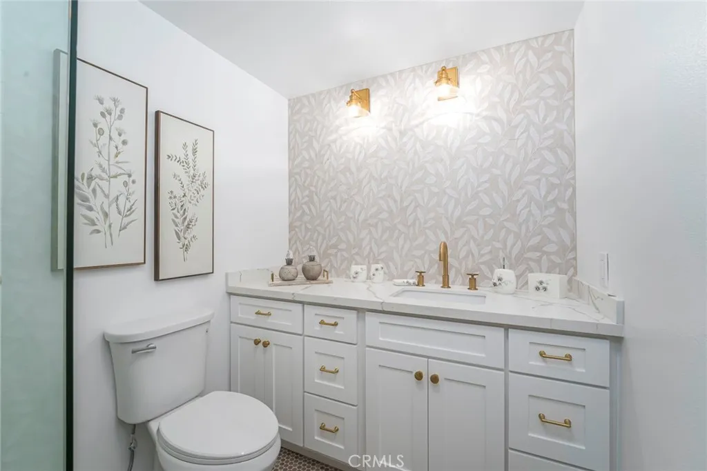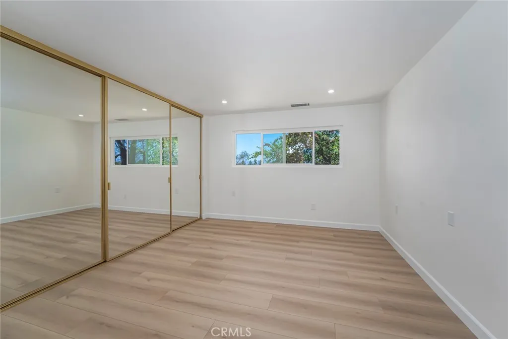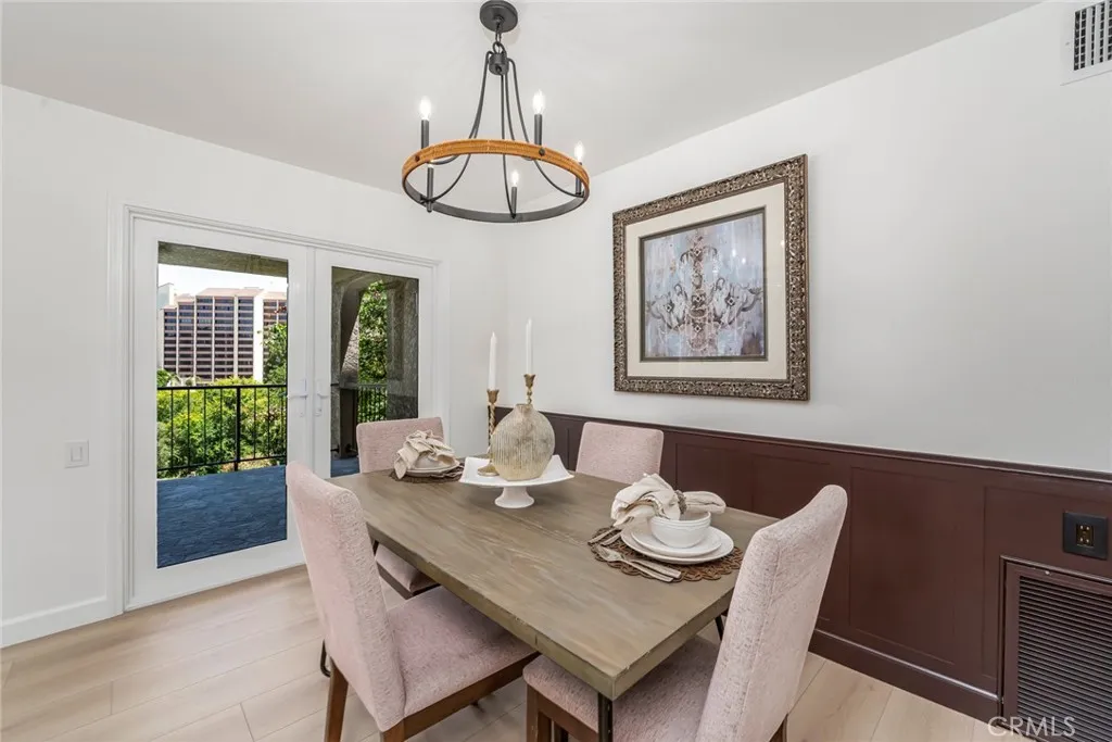 Brand New Construction with a view! Motivated Seller, bring your offers! Experience refined living in this beautifully renovated Villa Puerta model at 5372 Punta Alta, Manor 1C, located in the heart of Laguna Woods Village. From the moment you step through the first-floor entry with custom iron gates and striking double doors with frosted glass inserts, youll be captivated by the homes craftsmanship and thoughtful design. Inside, 8-inch wide luxury vinyl plank flooring flows throughout the main living areas, complemented by dual-pane windows and sliding glass doors that fill the home with natural light. The expansive living room showcases two bifold doors flanking a warm wood accent wall, an electric fireplace, and ample space for a mounted television. Hidden storage behind the accent wall adds convenience. The dining area features wainscoting in rich dark tones and a modern LED fixture, tying together the homes sophisticated style. The chef-inspired kitchen boasts quartz countertops, a floating center island with additional storage, a Samsung French-door refrigerator, full stainless and black appliance suite, white shaker upper cabinets, dark lower cabinetry, and a stunning patterned tile backsplashall illuminated by adjustable LED lighting. Retreat to the luxurious primary suite, where octagon-patterned tile flooring meets a spa-like bath featuring a marble-topped vanity with dual mirrors, light wood cabinetry, and a marble walk-in shower with rain-style showerhead, built-in niche, and seating. The suite also offers a triple-door mirrored wardrobe, LED lighting, and seren
