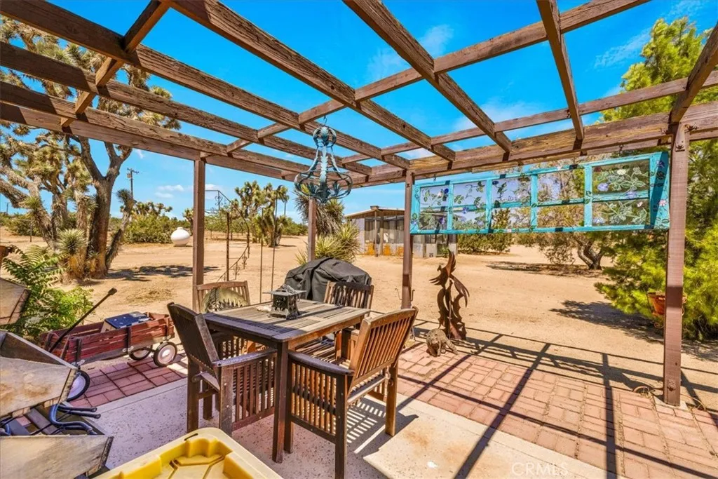 Gorgeous well maintained home on a large, very nice lot makes 56810 Chipmonk an exceptional value. It does not take much imagination to see just what a beautiful home and great layout is presented for you. With soaring cathedral ceilings, bountiful windows capturing every bit of light, a rustic brick framed wood burning fireplace, a lot of storage and beautifully built in features like the full wall bookcases in the living room the attraction will make you love this location. The location is in the very desirable Rancho Mesa community and is a mostly fenced lot boasting over 2 acres. The well appointed kitchen features granite countertops, a dishwasher and built in microwave and nice views from the window. The primary bedroom is spacious and has an ensuite full bathroom with dual vanity sinks and a bonus room built off the back of the primary bedroom that would make for a great art studio, sunroom, reading room or any number of possibilities. The well manicured backyard is fully fenced and adorned with mature joshua trees and other desert variety. The location is rural and peaceful and is close to all the high desert has to offer. Just down the street from some well known locals like La Copine restaurant and the Giant Rock Meeting room featuring good food and live entertainment. Less than 15 minutes from the western movie set turned chic town Pioneertown and the renowned Pappy and Harriet's Pioneertown Palace. Less than a 15 minute drive to downtown Joshua Tree and it's eclectic shops and restaurants and the main entrance of Joshua Tree National Park. Less than 15 minutes t
