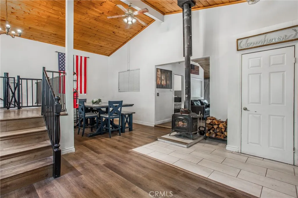 Set among towering pines in the Big Pine Tract of Forest Falls, this inviting 2-bedroom, 1-bath mountain cabin combines classic character with modern function. Built in 1925 and thoughtfully refreshed, it features vaulted cedar-lined ceilings, exposed beams, and a wood-burning stove that anchors the open-concept living, dining, and kitchen areas. A spiral staircase connects the main-level bedroom and bath to a second private bedroom below. The kitchen offers ample cabinetry, and forest views. Outside, enjoy a concrete patio and detached carport surrounded by mature trees on a 9,500-sq-ft lot. Newer improvements include updated flooring and efficient heating. Located approx. 0.2 mi to San Gorgonio Trailhead and 0.4 mi to Big Falls Picnic Area, with easy access to Highway 38 for commuting toward Redlands or Yucaipa. Forest Falls local caf, general store, and post office are within a mile, and the communitys HOA provides water, trash, and road maintenance. Ideal for a primary retreat or weekend escape. Includes 3D walkthrough, video tour, and interactive floor plan viewer.