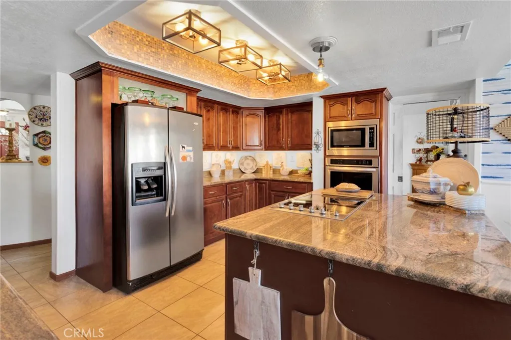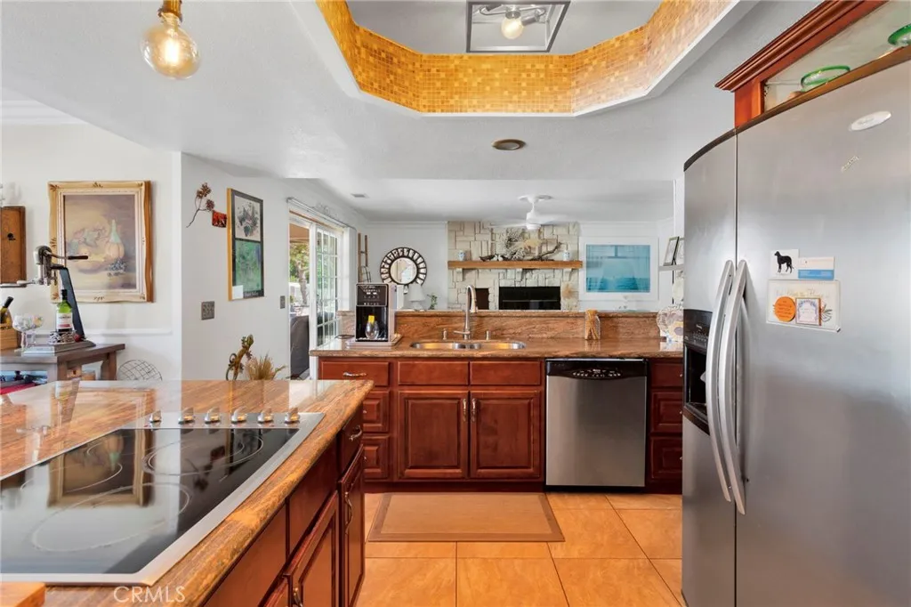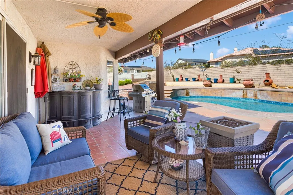Move-in ready, 3-bedroom, 3-bath, bonus room and office! This spacious 3-bedroom, 3-bath home features soaring 20-ft vaulted ceilings, crown molding, hardwood floors throughout and a serene getaway with a pool and spa in the backyard! The remodeled kitchen offers modern finishes and flows into the open-concept living area. A dedicated office provides the perfect space to work from home, while the large bonus room includes its own private patio balconyideal for use as a guest suite, media room, or playroom. The primary suite boasts a walk-in closet and private bath. Outside, enjoy a freshly painted exterior, wrought iron fencing, covered patio, and a charming gazeboperfect for relaxing or entertaining. The expansive lot also offers RV access, a fully fenced yard, and beautiful backyard views. Conveniently located near schools, shopping, and Hwy 18 for easy commuting. Pride of ownership throughout