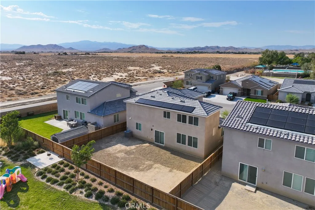 ASSUMABLE LOAN! 3.375%! Located on the desirable West Side of Rosamond, directly across from Westpark Elementary, this spacious 4-bedroom, 3-bathroom smart home offers a flexible layout and a fantastic location close to schools, shopping, and Edwards AFB. With everything from the lights to the entry points, this home has smart home features and access and for an added bonus it has paid off solar! Downstairs, you'll find a convenient bedroom and full bathroomperfect for guests, in-laws, or a private home office. The heart of the home is the open-concept kitchen, which features crisp white cabinetry, sparkling quartz countertops, a walk-in pantry, and plenty of prep and storage space. The kitchen flows seamlessly into the large living area, ideal for cozy family nights or entertaining during football season. Upstairs, the oversized primary suite includes an ensuite bathroom and a generously sized walk-in closet. A versatile loft adds even more space and can be used as a home office, playroom, or second living area. Step outside to a large backyard that's a true blank canvasready for your dream patio, garden, or outdoor entertaining space. With its ideal location, smart layout, and updated kitchen, this Rosamond home offers both comfort and potential. Don't miss your chance to make it yours!
