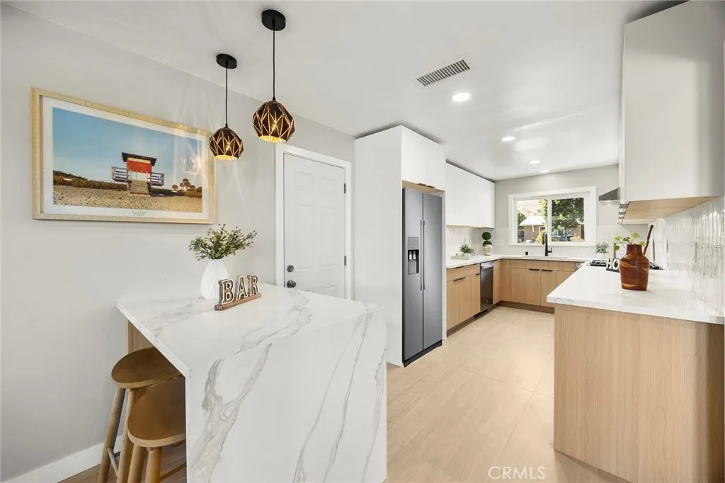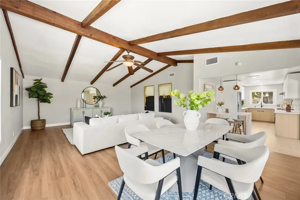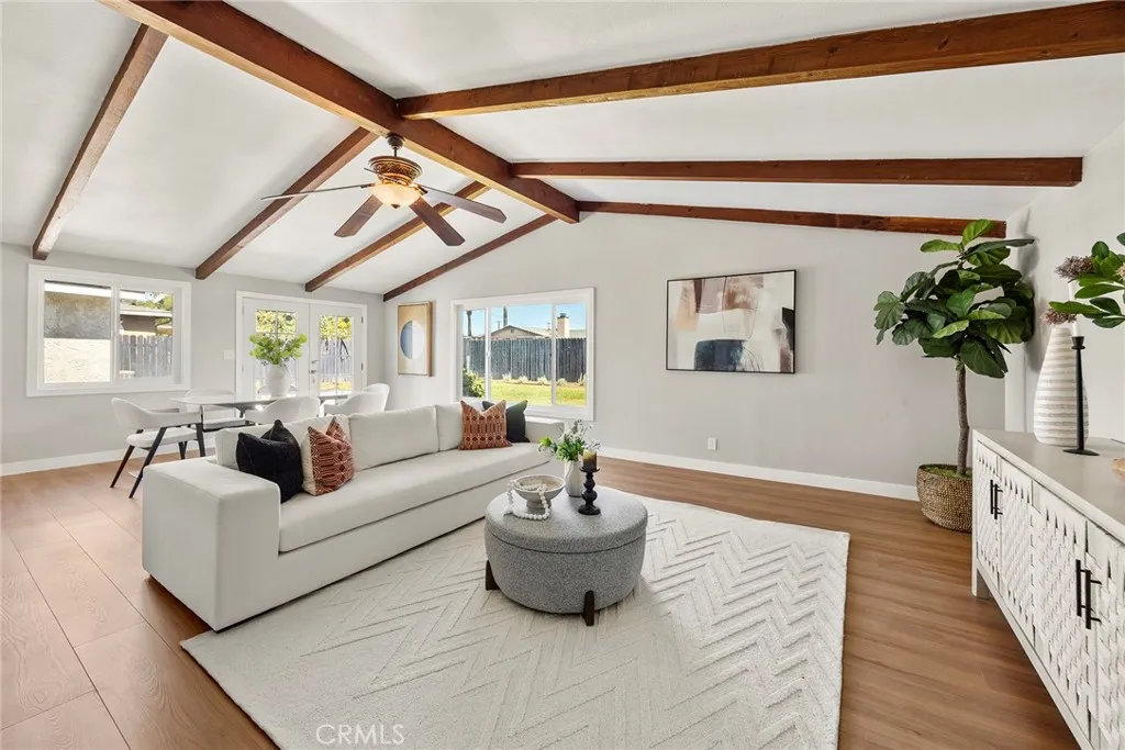Tucked on a cul-de-sac in Rowland Heights, this charming single-story home blends comfort and style with a touch of farmhouse charm. Step inside to find a welcoming layout featuring 3 bedrooms and 2 bathrooms, with custom flooring and recessed lighting that adds a fresh, modern feel. The home offers both a living room and a family roomeach with French doors that open to the backyard, filling the spaces with natural light and creating a seamless indoor-outdoor flow. The family room also features high, beamed ceilings adding character and warmth. The dining area flows easily from the living spaces, perfect for casual meals or entertaining. The kitchen offers generous storage with soft-close drawers and cabinets, plenty of countertop space, stainless appliances and a built-in breakfast bar area making it both functional and inviting. The primary suite offers a peaceful retreat with its own en-suite bathroom and a beautifully updated walk-in shower with dual shower heads. Mirrored closet doors in the bedrooms add both function and flair. Step outside to a backyard thats ready for play, entertaining, or simply relaxing with a large grass area and room to create your own outdoor oasis. You'll also enjoy direct access to the two-car garage, adding convenience to everyday living. From the inviting floorplan to the farmhouse touches throughout, this home has a warmth and ease youll instantly feel.