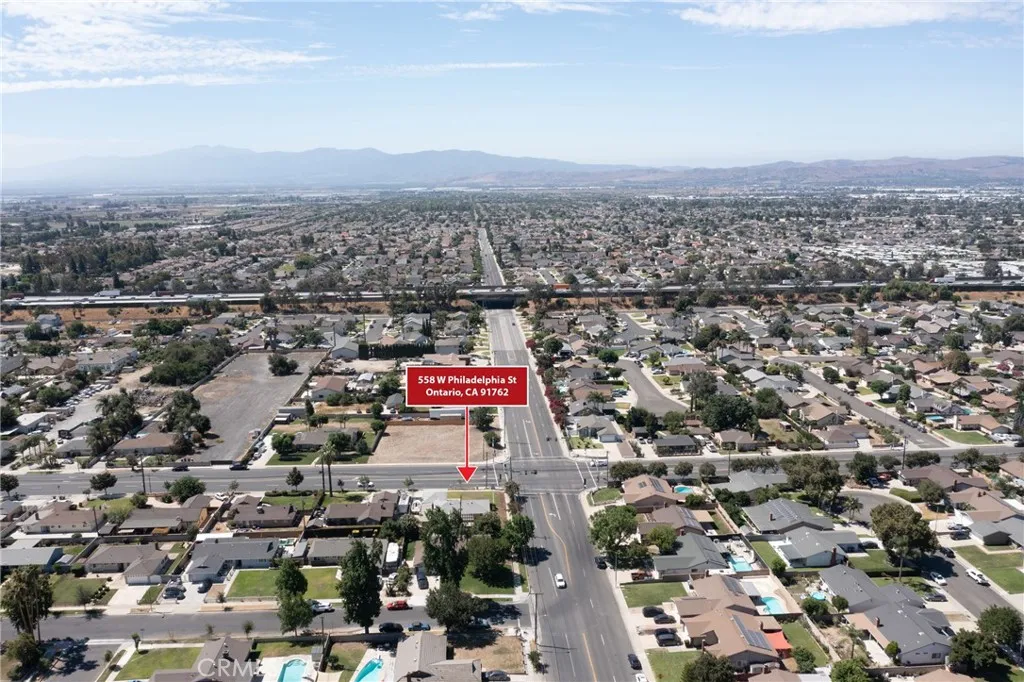 Welcome to 558 W Philadelphia St in Ontario a spacious and well-maintained single-story corner-lot home offering 4 bedrooms, 2 bathrooms, and 1,895 sq ft of living space on a generous 9,270 sq ft lot. Situated in a desirable neighborhood, this property features a versatile bonus room and a sunroom area, perfect for entertaining, relaxing, or working from home. Enjoy cooking in the updated kitchen with newer cabinets and granite countertops that blend style and functionality. The home also boasts brand-new waterproof laminate flooring, fresh interior paint, and new carpet in the bedrooms. Several bedrooms include mirrored closet doors, and the home is equipped with central heating and air conditioning for year-round comfort. Additional highlights include a 2-car garage, RV parking, and a spacious yard with plenty of potential. Conveniently located near shopping, freeways, and schools, this home is a must-see for buyers seeking space, updates, and location. Dont miss this opportunity to own a move-in ready home in the heart of Ontario! ***Home is virtually staged***