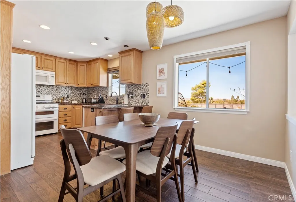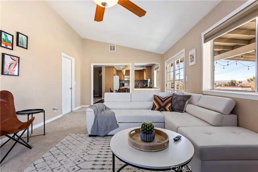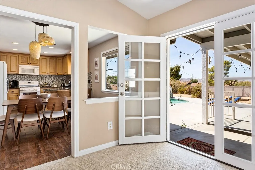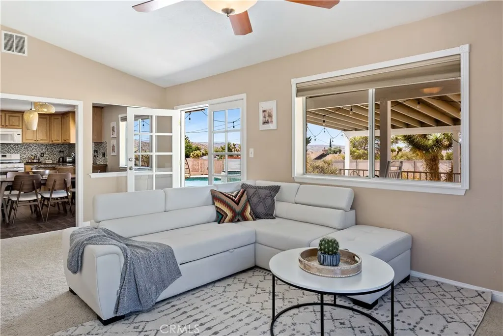Welcome to this turnkey pool home in the highly desirable Sky Harbor neighborhood of Yucca Valley. This 4-bedroom, 2-bathroom home offers an inviting layout featuring an updated kitchen, modernized bathrooms, two separate living areas, and a large primary suite. The open-concept design flows seamlessly into the stunning backyard. The sparkling pool, upgraded with a newer heater and equipment, is surrounded by mature trees creating a private oasis perfect for family gatherings or relaxing evenings. Practical upgrades, including a newer HVAC system, newer roof, and leased solar, provide peace of mind, while the homes proximity to nearby trails makes it ideal for an active lifestyle. Your private oasis awaits!