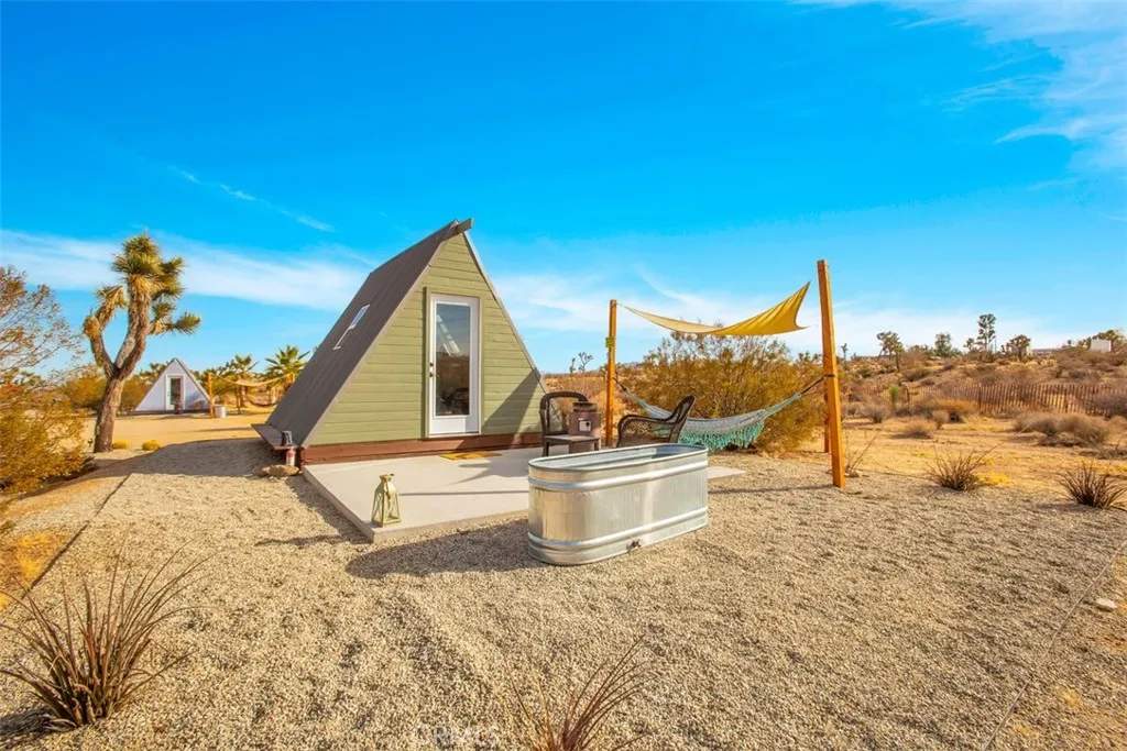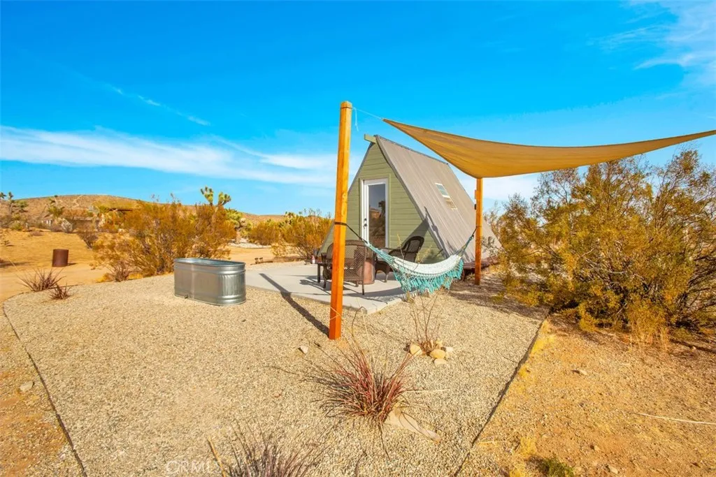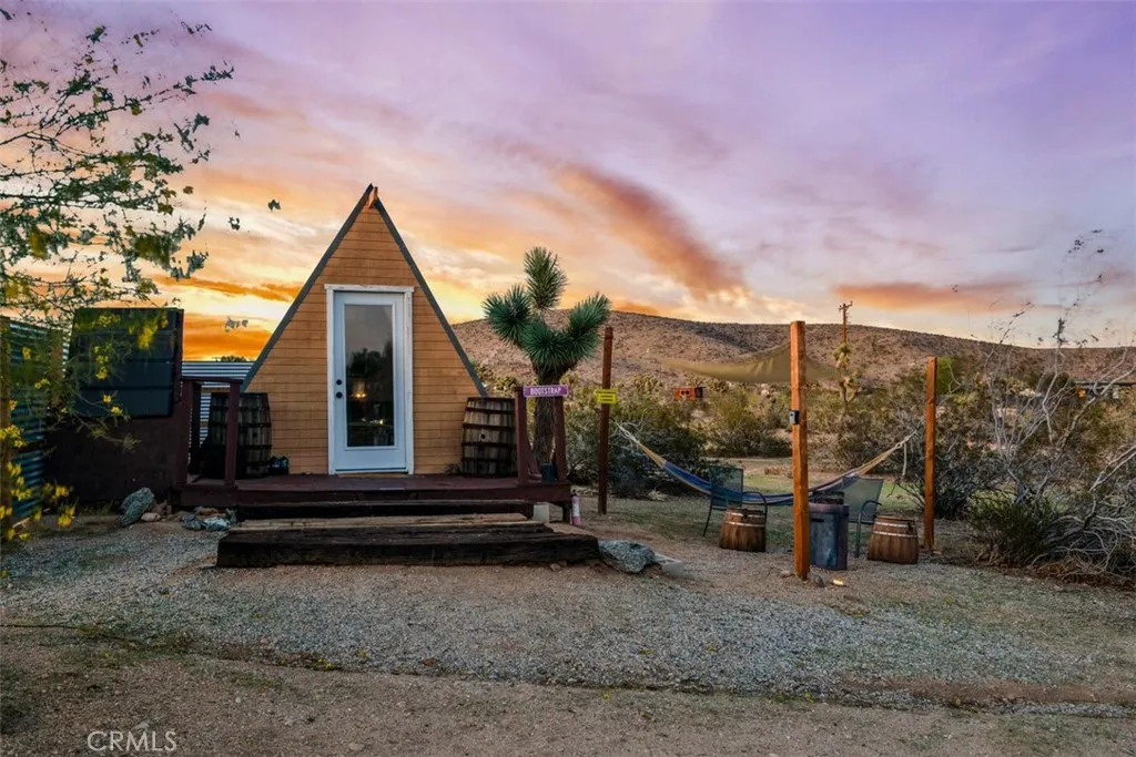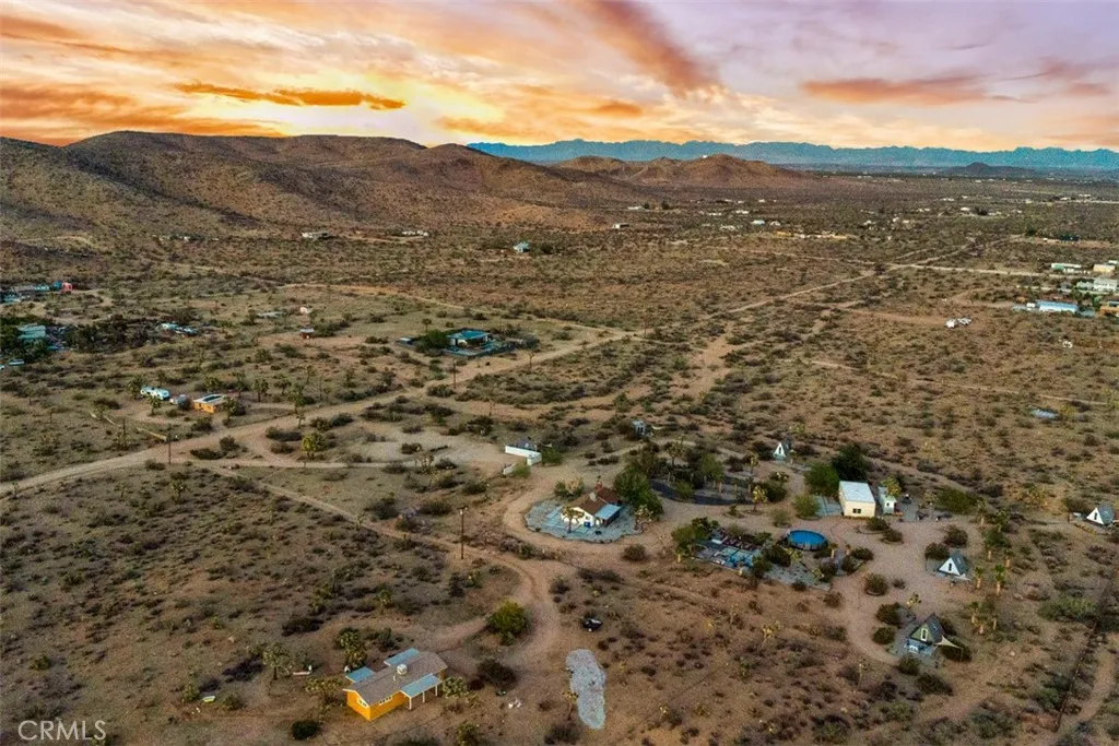Big Price Drop!!! Seller is Motived to Sell!! Will provide property revenue upon request! Discover an extraordinary 5-acre income-generating desert retreat minutes from Joshua Tree National Park. This turnkey property combines luxury desert living with a successful boutique glamping business that grossed a significate amount in 2024 and was above the income of 2023. The contemporary main house features vaulted ceilings, natural wood beams, and a gourmet kitchen with expansive granite island. With nine bedrooms and stunning desert views through picture windows, it offers the perfect blend of comfort and natural beauty. A detached studio adds additional living space with its own kitchen, bedroom, bath, and attached garage. The property's hospitality infrastructure includes six framed structures, one the unique "Tin Can" and one studio apartment. With the right vision a buyer can rent out the house for additional income. Recent upgrades enhance the guest experience with a pool, spa retreat, bocce ball court, and renovated sun deck. Professional landscaping showcases mature palm trees and organically raised Joshua trees throughout the grounds. Multiple intimate spaces for relaxation dot the property, from poolside loungers to private daybeds. Guests can enjoy stunning sunrises, breathtaking sunsets, and stargazing under crystal-clear night skies. Recent improvements include renovated bathrooms, refurbished accommodations, and enhanced outdoor entertainment areas. This turnkey property presents a rare opportunity to own both a private desert sanctuary and a thriving hospitality