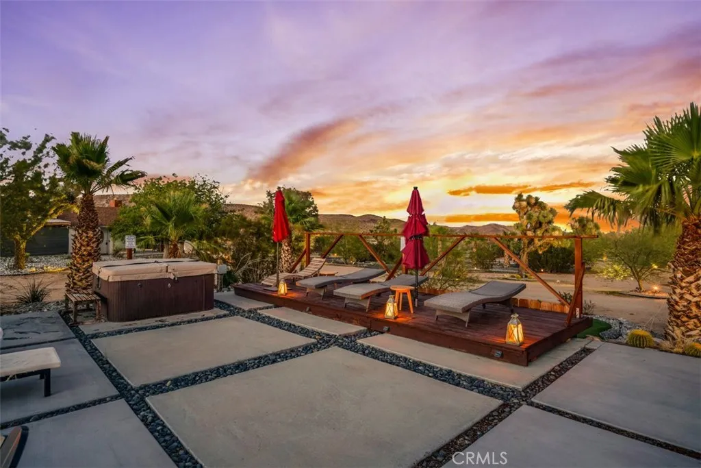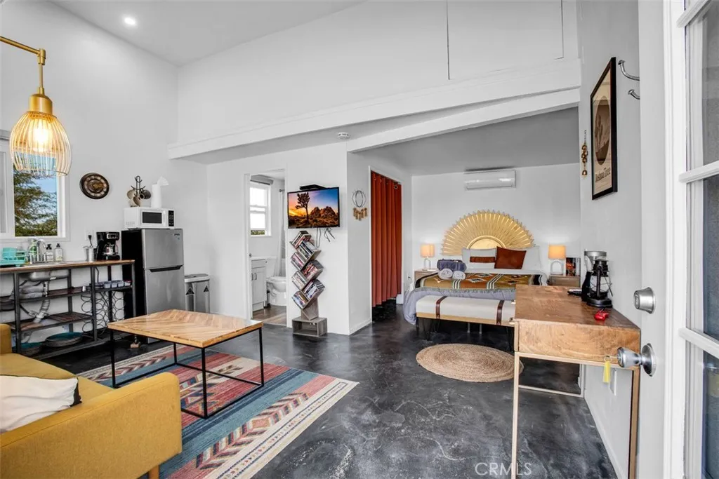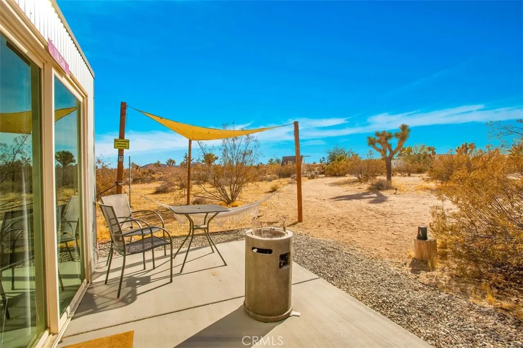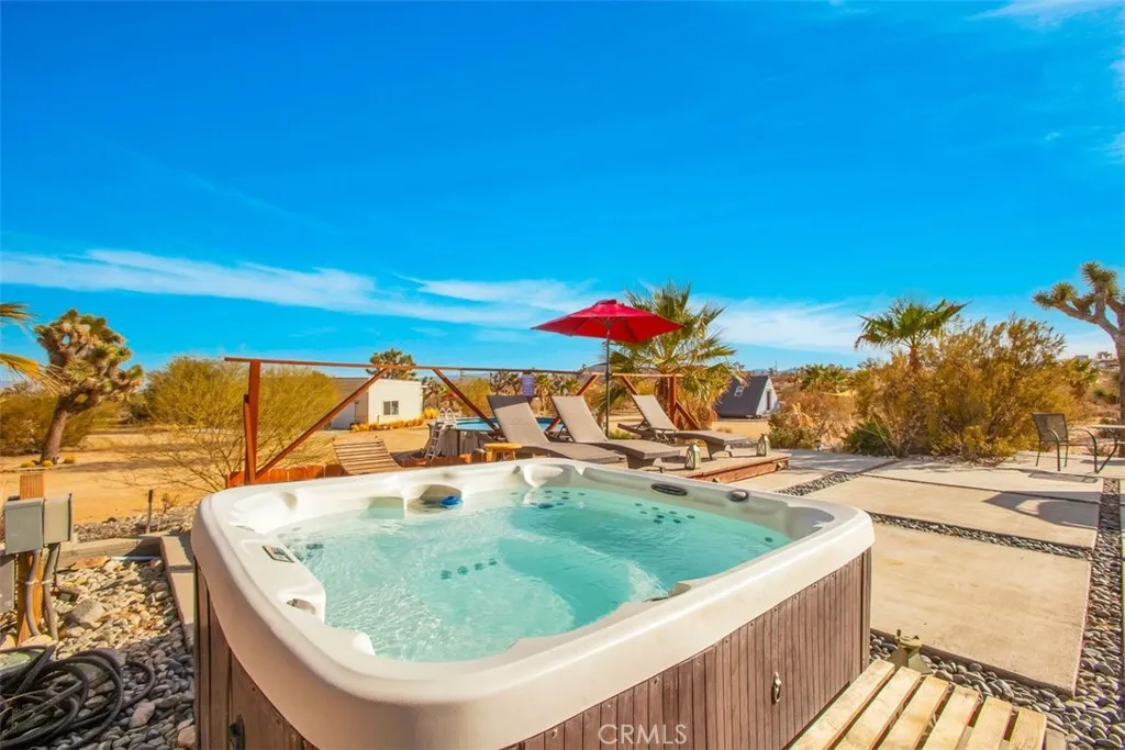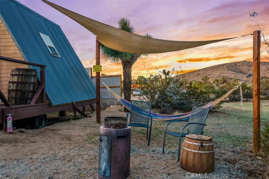 Big Price Drop!!! Seller is Motived to Sell!! Will provide property revenue upon request! Discover an extraordinary 5-acre income-generating desert retreat minutes from Joshua Tree National Park. This turnkey property combines luxury desert living with a successful boutique glamping business that grossed a significate amount in 2024 and was above the income of 2023. The contemporary main house features vaulted ceilings, natural wood beams, and a gourmet kitchen with expansive granite island. With nine bedrooms and stunning desert views through picture windows, it offers the perfect blend of comfort and natural beauty. A detached studio adds additional living space with its own kitchen, bedroom, bath, and attached garage. The property's hospitality infrastructure includes six framed structures, one the unique "Tin Can" and one studio apartment. With the right vision a buyer can rent out the house for additional income. Recent upgrades enhance the guest experience with a pool, spa retreat, bocce ball court, and renovated sun deck. Professional landscaping showcases mature palm trees and organically raised Joshua trees throughout the grounds. Multiple intimate spaces for relaxation dot the property, from poolside loungers to private daybeds. Guests can enjoy stunning sunrises, breathtaking sunsets, and stargazing under crystal-clear night skies. Recent improvements include renovated bathrooms, refurbished accommodations, and enhanced outdoor entertainment areas. This turnkey property presents a rare opportunity to own both a private desert sanctuary and a thriving hospitality