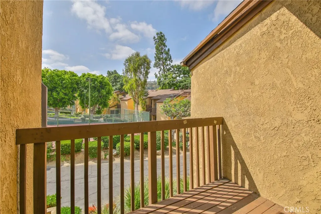 Welcome to Lakeridge community, upstairs unit 94 is very well maintained with beautiful views of the streams & waterfalls throughout the complex. Spacious living room with a sliding door to the patio overlooking a tranquil stream. The bedroom has a murphy bed and a sliding glass door to the patio with a view of the tennis courts. Skylight near the walk-in closet and bathroom vanity, shower-tub combination and stackable washer and dryer hook ups in a closet. New refrigerator. The unit is near the gate entrance, faces the tennis courts and is in move in condition. Conveniently located near 60 and 605 freeways, dining & shopping in uptown Whittier and Rio Hondo College close by.