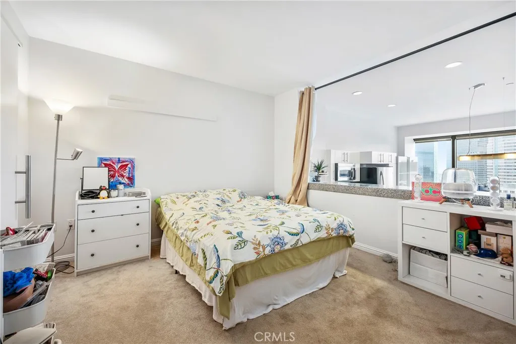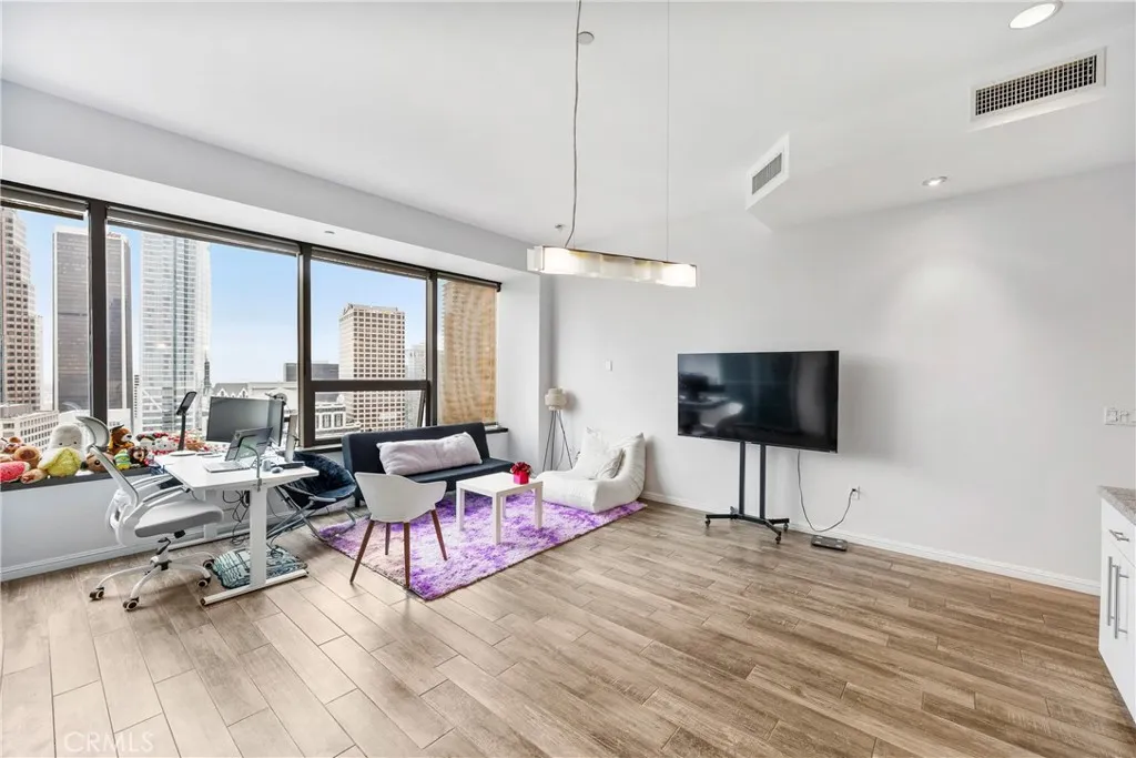 Not quite ready to move in? Even better! Heres your opportunity to OWN a PRESTIGIOUS piece of real estate along LAs iconic WILSHIRE BOULEVARD and KEEP it leased out until youre ready to make it home. Situated high on the 26th FLOOR, this PEACEFUL west-facing loft offers BREATHTAKING SUNSET VIEWS, capturing the glowing golden hour light through expansive wall-to-wall windows. The 800 sq ft layout is thoughtfully designed with an OPEN-CONCEPT living and dining area, allowing for versatile furnishing arrangements and a spacious feel. The ELEVATED PLATFORM BEDROOM includes two closets, plush carpeting, a wraparound ledge perfect for displaying art or dcor, and UNOBSTRUCTED CITY VIEWS. The KITCHEN features granite countertops, stainless steel appliances, plentiful cabinet space, and recessed lightingideal for both daily living and entertaining. This CHARMING BATHROOM offers a nostalgic coastal vibe with sailor blue and navy tile accents. Enjoy a relaxing soak in the deep tub, a separate walk-in shower, an oversized vanity, and generous storage throughout. At 1100 WILSHIRE, you don't need to leave your building to enjoy LUXURY AMENITIES; on the 17th-floor SKYDECK, including a HEATED INFINITY POOL, SPA, CABANAS, LOUNGE BEDS, WET BAR, multiple BBQ area and a FIRE PITall designed for RELAXATION and ENTERTAINMENT. Stay fit in the fully equipped GYM with flat-screen TVs or unwind in the PRIVATE MOVIE THEATRE. A BUSINESS CENTER, GUEST PARKING, 24-HOUR CONCIERGE, and controlled access add to the convenience and SECURITY. Located just steps from the Financial District, LA Live, 7th & Fig