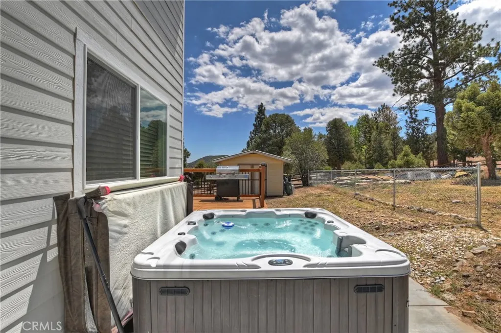 Elevate your lifestyle ~ Set yourself apart with this newly built 2023 custom mountain residence, where exceptional design, comfort, and breathtaking views come together in perfect harmony ~ Ideally located just 15 minutes from all of Big Bears year-round amenities ~ This spacious home offers the perfect balance of seclusion and accessibility ~ Step inside to be greeted by soaring high ceilings and an open floor plan bathed in natural light ~ The inviting interior features high-end finishes throughout, including custom natural quartzite countertops, sleek stainless steel appliances, hand painted solid wood base boards and thoughtful touches that elevate everyday living ~ The expansive great room seamlessly connects to the kitchen and dining area, creating an ideal flow for entertaining or unwinding in style ~ The homes exterior is just as impressive, enjoy sunrise coffee or sunset cocktails from the large front and back decks, or take in the crisp mountain air from the private upstairs balcony off the game room ~ Whether you're relaxing or hosting guests, every corner of this home was designed to capture the surrounding mountain beauty ~ An attached garage and additional storage shed provide ample space for all your mountain toys from snowboards to climbing equipment, as well boat and jeep parking ~ The adjacent lot can potentially be included in the sale at the right price, the possibilities to expand or simply enjoy extra space and privacy are yours to explore ~ Whether you're seeking a primary residence or a luxurious second home this one-of-a-kind property delivers both