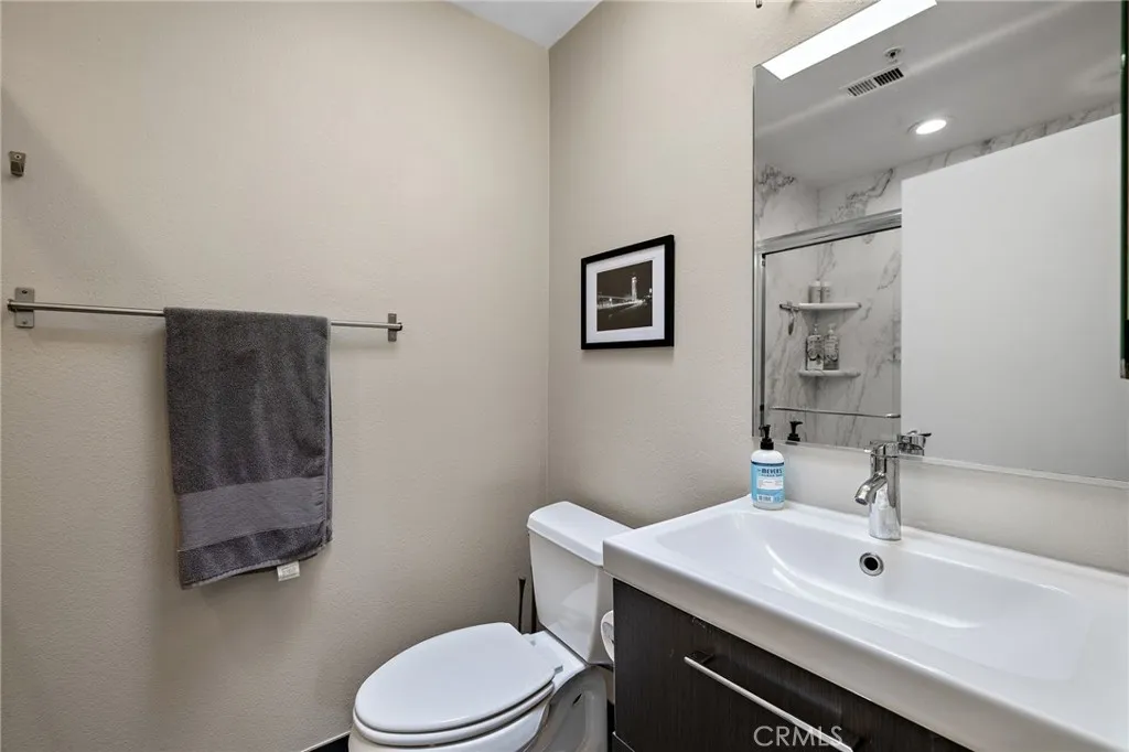 MOTIVATED SELLER!!! End unit with endless upgrades and newly added central AC. This upstairs condo is the largest floorplan in the Brookstone community. The open layout boasts a gas fireplace, high ceilings, skylights and an abundance of natural light. An upgraded kitchen includes stainless steel appliances, quartz countertops, recessed lighting, a breakfast bar and your own in-unit stackable washer and dryer. The large primary bedroom has dual mirrored sliding glass closet doors and a newly remodeled ensuite primary bathroom. The secondary bedroom, with adjacent remodeled bathroom, also includes a window seat and huge walk-in closet. Large sliding glass doors from the living room and primary bedroom open to a spacious balcony with greenbelt views and a private storage closet. The unit comes with its own enclosed detached garage, an assigned parking space right out front, as well as guest parking spaces directly across the parking lot. Other upgrades include laminate wood flooring, new interior paint, ceiling fans, light fixtures, plumbing fixtures and a front door smart lock. The HOA offers amenities such as a pool, spa, internet, basic cable and trash service. Come see for yourself!!!