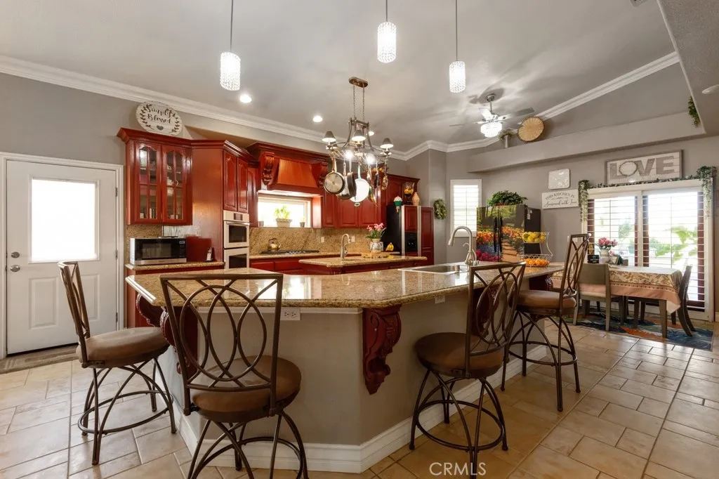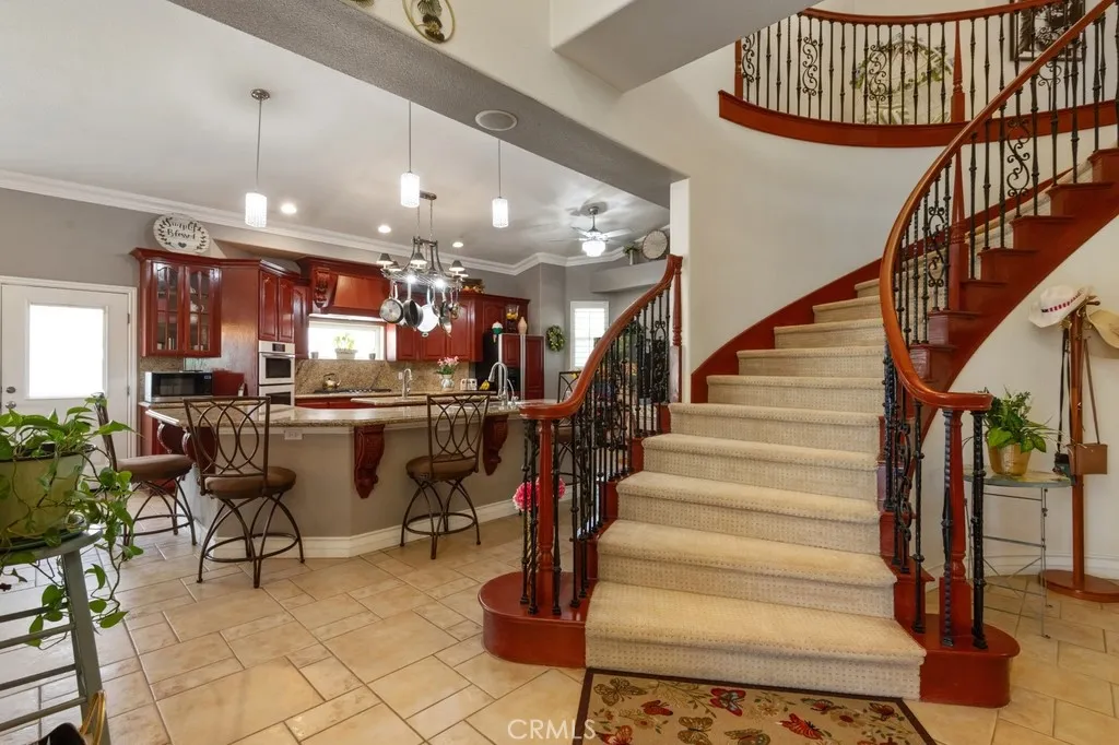 ***PRICE IMPROVEMENT!*** WELCOME TO A BEAUTIFUL & UNIQUE CUSTOME HOME! Located in the desirable area of Spring Valley Lake. A two (2) story home with three (3) bedrooms and three (3 1/2) bathrooms. Enter through the double doors into this amazing home, greeted at the foyer with marble floors and skylight. On one side of the entry is a formal living room and on the other side is formal dining room. The family room has a beautiful fireplace, custom built entertaining center with an open floor plan for a complete entertainment area. The kitchen features a big breakfast bar with a sink, island, custom made cabinetry, walk in pantry, new smart appliances, new stove top, granite counter tops, and breakfast nook. Two bedrooms with private bathrooms each are conveniently located downstairs. Next to these rooms is a bathroom for your guests. Laundry room with utility sink and cabinets. A custom staircase that takes you upstairs to a loft and the Primary suite, entering through double doors and an entrance with marble floors and private bathroom with double sink, a jacuzzi tub surrounded by marble floors, custom-built cabinets and walk in closet. The primary bedroom has carpet, a double-sided fireplace, a half-moon platform for a personal sitting area, walk to the balcony and enjoy a view of the Valley city lights. Throughout the home you have custom made crown molding, plantation shutters, custom cabinetry, vaulted ceiling, and beautiful chandeliers. Open the wrought-iron gate and your private driveway that takes you to the backyard and to the attached two-car garagewith plenty mo