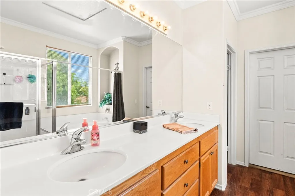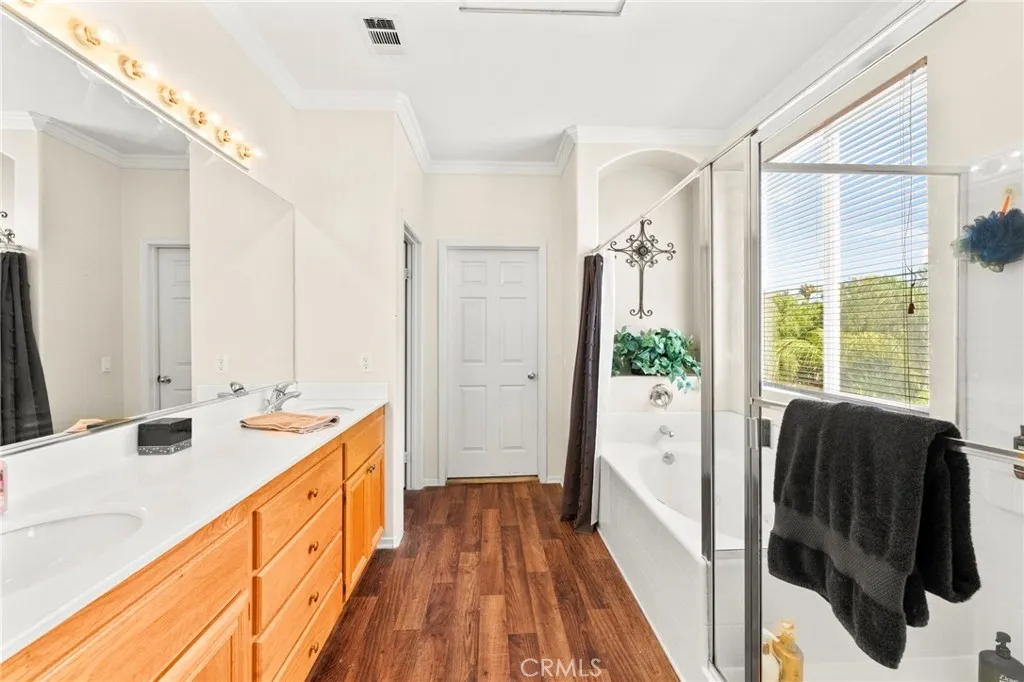 Welcome to 27552 Stanford Dr, a beautifully upgraded 3-bedroom, 2.5-bath home located in a highly desirable Temecula neighborhoodjust minutes from the Promenade Mall, James L. Day Middle School, parks, and shopping. This home features real wood flooring throughout and a stylish upgraded kitchen with granite countertops and a custom tile stone backsplash. Upstairs, youll find a spacious loft perfect for a home office, game room, or second living area. One of the homes standout features is the hidden room tucked under the stairsa unique and versatile space ideal for storage, a reading nook, or a private hideaway. Step into the beautifully landscaped backyard, complete with raised gardening beds, a wooden patio cover with an aluminum top, a built-in BBQ, and a cozy fire pitperfect for entertaining or relaxing year-round. Dont miss the opportunity to own this beautiful and functional home in one of Temeculas most convenient and family-friendly locations!
