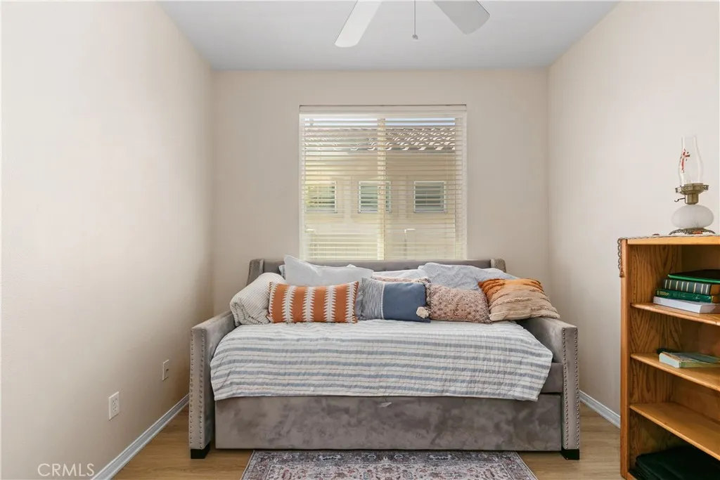 Discover refine living in this sophisticated one story residence in the highly desirable Solera Oak Valley Greens Community. A vibrant 55+ community. The sliding glass door leads to the covered patio and generously lot with several fruit trees that includes a peach tree, guava tree and plums tree, great space to entertain and BBQ. The kitchen opens in to the living space and adjacent is the inside laundry room. Besides the 2 bedrooms the floor plan comes with a den/office space that is perfect for hobby room or an extra room for company to stay. Two car garage and driveway. The club house has resort style amenities including a club house, pool, fitness center. library, billiard room, and pickleball courts. Conveniently located near freeway access, only minutes away to world-class attractions in the palm springs area, casino Morongo and famous Cabazon Outlet stores.
