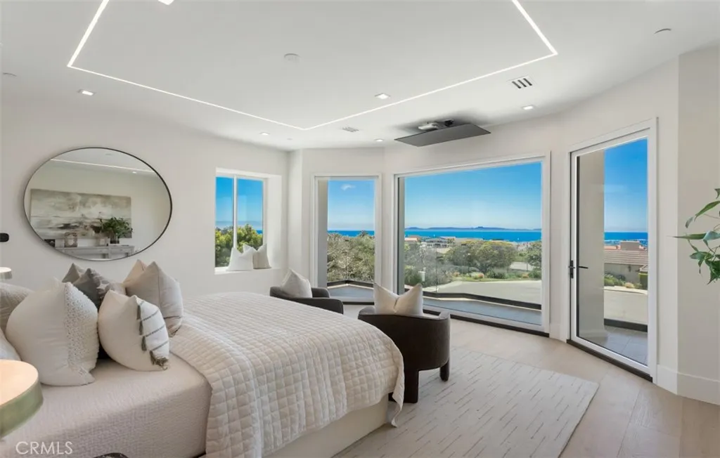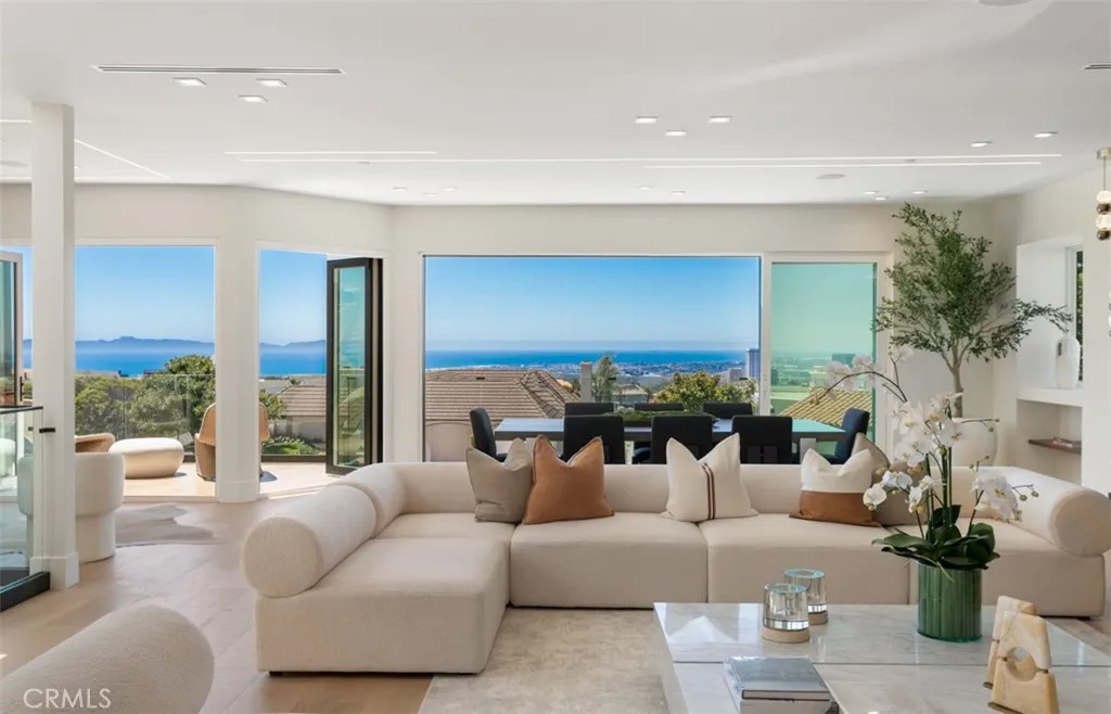 Perched at the end of a quiet cul-de-sac within the exclusive guard-gated enclave of Harbor Ridge, 4 Narbonne is a stunning showcase of design, function, and luxury. Completely reimagined, this architectural gem blends striking modern aesthetics with a warm, inviting ambianceperfectly tailored for entertaining and everyday living. Beyond a private entry gate and custom oversized front door, youre welcomed into a dramatic open-concept layout filled with natural light, curated finishes, and an effortless indoor-outdoor flow. The main level offers three spacious bedrooms, including a junior primary suite with ocean views, and two secondary bedrooms that overlook a serene water feature. A sleek lounge with a fireplace, bar, and media wall adds to the homes entertainer appeal. Take the elevator upstairs, where panoramic views span the Pacific Ocean, Catalina Island, Newport Harbor, and city lights that stretch to downtown LA. Designed for both grandeur and comfort, this level features two additional bedroomsone currently used as a home office with its own balconyas well as a show-stopping primary suite wrapped in floor-to-ceiling glass. The spa-like bathroom and boutique-style closet complete the experience. The heart of the home includes both a front-facing designer kitchen and a full secondary prep kitchen, flanked by a breakfast nook, formal dining area, double fireplaces, and walls of sliding and bi-folding doors that dissolve the line between indoors and out. Step into your own private resort: a spectacular outdoor oasis with a pool, spa, dry sauna, multiple waterfalls, a B
