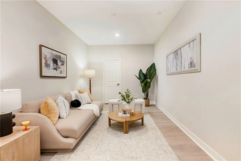 Welcome to this stunning three-story townhome, nestled within the prestigious, guard-gated Metro Heights community in Montebelloone of the most luxurious and scenic neighborhoods in the San Gabriel Valley. Completed with premium upgrades and a thoughtfully designed layout, this modern residence blends bold architecture, upscale finishes, and versatile living spaces ideal for today's lifestyle. The first level features a spacious flex room perfect as a home office, gym, or guest bedroom, along with an additional bonus room offering endless potential for customization. With a first-floor Full Bathroom & 2 Large Storage Closet it also provides ideal accommodations for visitors or multigenerational living. On the second floor, experience elevated everyday living in the expansive open-concept great room, anchored by a striking linear oversized Kitchen Island that centers to a Living Room Balcony feature with floor to ceiling sliding doors. The chefs kitchen is a dream come true, featuring a the large center island with breakfast bar, high-end Stainless Steel appliances, quartz countertops, designer backsplash, walk-through pantry, and abundant soft-close cabinetry. Adjacent sliding doors lead to a beautifully turfed private balcony, ideal for indoor-outdoor entertaining. Embrace the expansive Living Room and updated half bath perfect for your all inclusive entertainment floor. Upstairs, the third level showcases three spacious bedrooms, including a luxurious primary suite complete with a custom walk-in closet, spa-inspired bath with dual vanities, and oversized tiled walk-in sho