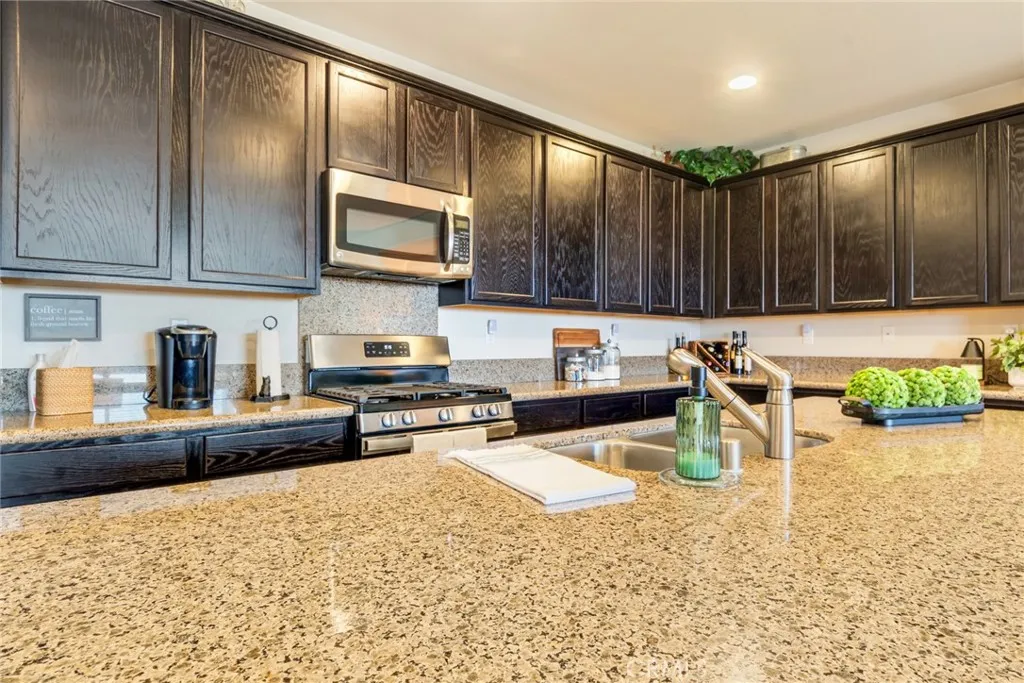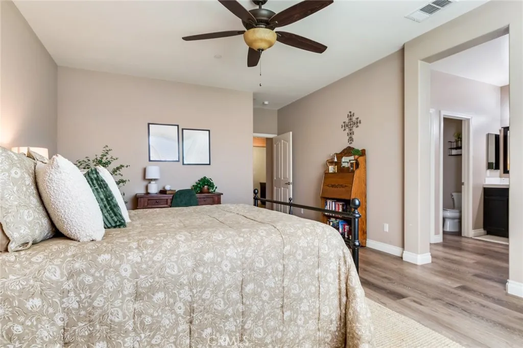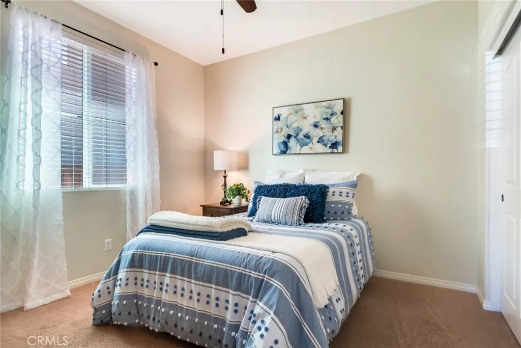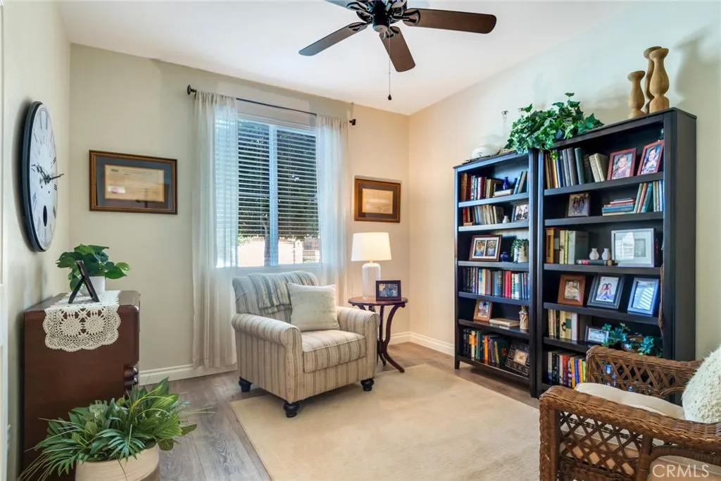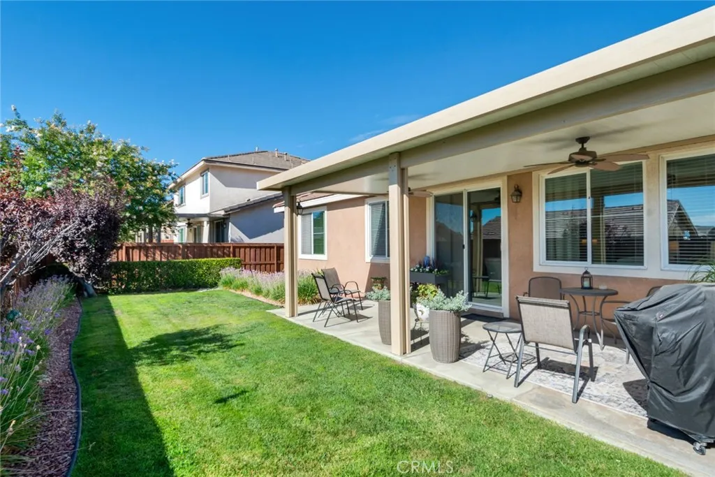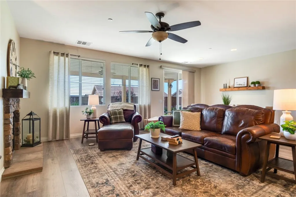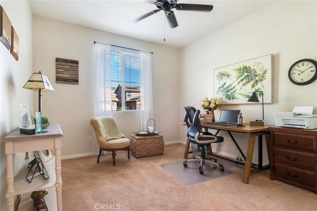 Beautiful single-story home in the desirable Rosena Ranch master-planned community! 3 bedrooms + office/optional 4th bedroom with French doors. Over 2,000 sq ft with great curb appeal, neutral vinyl plank flooring in main areas, carpet in secondary bedrooms. High ceilings, recessed lighting, and ceiling fans throughout. Spacious kitchen features granite counters, center island, and ample cabinetry, opening to dining and living room with cozy fireplace. Large primary suite with walk-in closet and en-suite bath with separate tub/shower and dual sinks. Indoor laundry room. Covered patio with mountain and neighborhood views, lush rose bushes, automatic sprinklers, and garage is hard-wired for a generator. Great home in a scenic, amenity-rich community! Amenities include