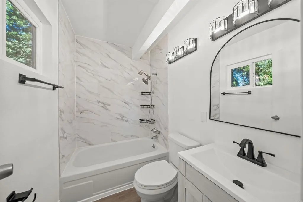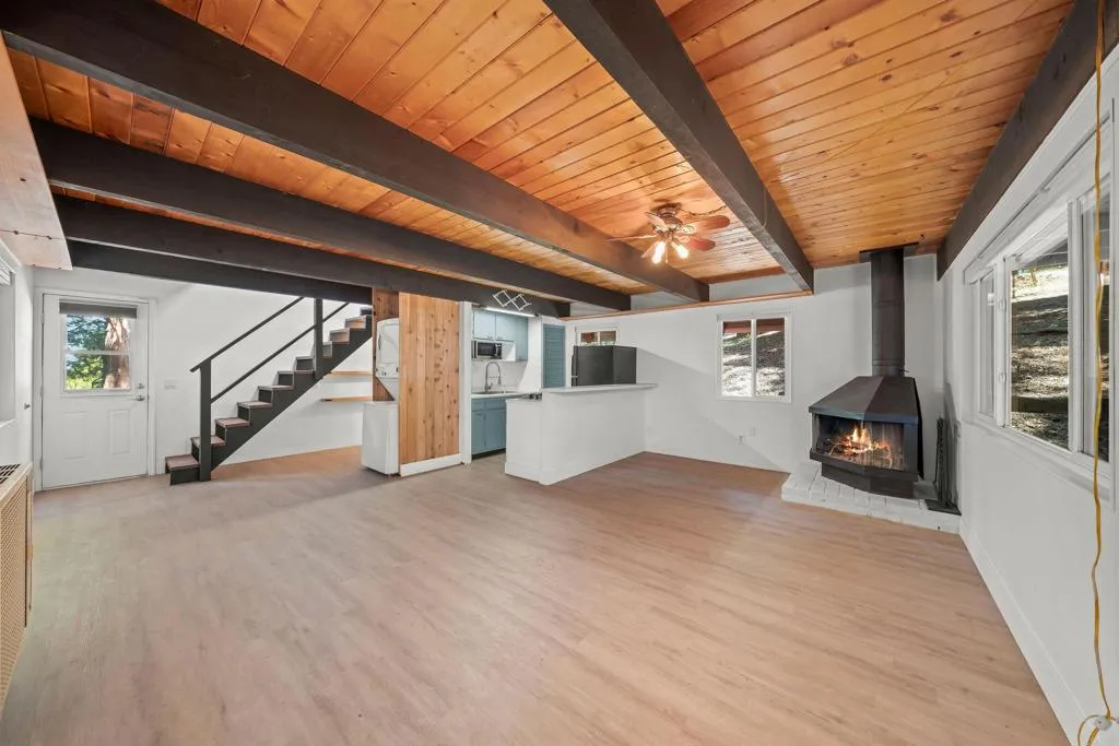 Welcome to 21803 Crestline Rda warm and inviting cabin tucked away in the tranquil woods of Palomar Mountain. Surrounded by nature and towering trees, this peaceful retreat offers the best of all four seasons. Colorful fall leaves, magical snowy winters, blooming springtime, and breezy, shaded summers. Inside, youll find new LVP flooring throughout, an open concept kitchen and updated bathroom, plus a stackable washer/dryer. The wood-burning fireplace provides cozy heat during the colder months and theres A/C upstairs for the warmer months. The spacious upstairs bedroom opens to a private deckperfect for sipping your morning coffee at sunrise or stargazing on clear mountain nights. The covered back patio is great for relaxing or entertaining, and a Tuff Shed offers space for tools or a small workshop and more. Whether you're looking for a weekend escape, a peaceful full-time home, or an income-producing Airbnb, this cabin is full of potential and charmall just an hour from San Diego and two hours from Orange County or LA.