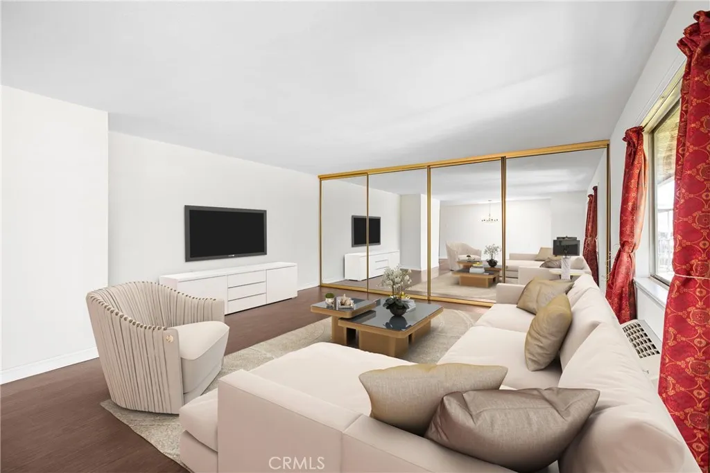 Top-Floor Penthouse Living in Laguna Woods Village 2369 Via Mariposa. Welcome to your serene third-floor retreat in the heart of Laguna Woods Village, Southern Californias premier 55+ community. This spacious and light-filled 1-bedroom, 1-bath condo offers an elevated, resort-style lifestyle with lush treetop views, beautiful natural light, and no stairs required, thanks to convenient elevator access. Step inside to discover nearly 1,000 square feet of single-level living with hardwood floors throughout, custom built-in shelving, and crown molding that adds a refined touch. Four skylights flood the space with sunshine, and a private screened entry offers peaceful airflow and an additional sense of security and comfort. The kitchen features Whirlpool appliances, tile countertops, and a clean, functional layoutideal for daily living or hosting. The large bedroom includes hardwood flooring and ample closet space, while the bathroom features a tile floor and is adjacent to the homes main living areas for added ease. Enjoy the convenience of garage parking with private storage and direct elevator access from the garage to your top-floor home. The home also features a smooth-finish ceiling, a valuable and time-consuming upgrade that not only enhances the look and feel of the space but also eliminates the original popcorn ceilinga common feature in many other units. A laundry room just steps away on the same floor. The building is surrounded by mature landscaping and tranquil walking paths. As a resident of Laguna Woods Village, youll have access to an unmatched array of amenitie