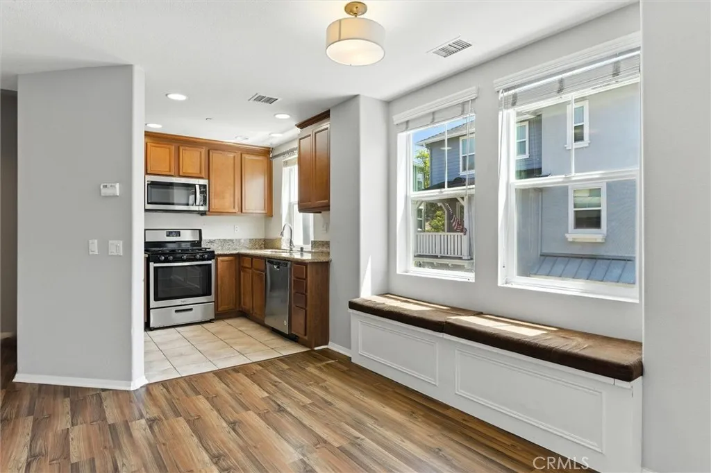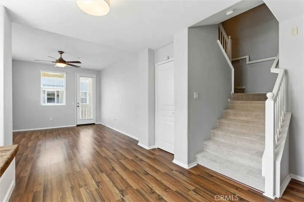 This stunning Valmont home features an open floor plan with laminate wood flooring on the main level, kitchen equipped with stainless steel appliances and granite countertops. Upstairs both spacious bedrooms include en-suite bathrooms and ceiling fans for added comfort. Youll find a convenient stacked washer and dryer tucked into hallway closet, along with additional custom cabinetry for extra storage. The home also includes a detached two car garage with a direct access door near the stairs, plus easy access to guest parking. High Speed Internet included in HOA. Enjoy the exceptional Ladera Ranch lifestyle with access to pools, Jacuzzis, tennis courts, clubhouses, multiple parks, a skate park, and scenic hiking trails throughout the community.