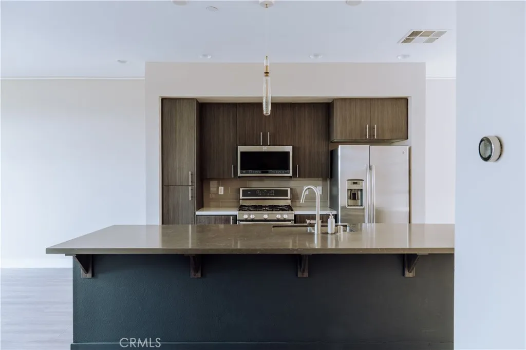 Incredible tri-level townhome with prime panoramic views of Atwater Village and the LA River at the Latitudes community in Silver Lake/Ivanhoe school district. This home features three bedrooms, two-and-a-half bathrooms. Upon entry, you'll find a versatile flex room on the first level, perfect for a home office or gym. The second level boasts an open-concept floor plan with a sun-drenched living area, balcony with views, kitchen, and dining area. Complete with large windows, high ceilings, recessed lighting, hardwood flooring, a center island, stainless steel appliances, this level also has a laundry room and powder room. The third level offers three generous bedrooms and two full bathrooms, providing ample space for family or guests. The master bedroom comes upgraded with soundproof window panes and a custom mirrored sliding door. Various other upgrades throughout the home, including tasteful velvet curtains, premium window treatments and hardwood floors throughout. Delight in the outdoors on the rooftop patio with beautiful sweeping views from both directions and an open entertaining space. The unit has an attached 2-car garage with direct entry into the first level. The orientation of the home is elevated above street, with an unobstructed frontage and dedicated entry path, thus providing privacy and stunning views. This securely gated complex offers a community pool and spa for your relaxation and enjoyment and guest parking. Located within a good school district, conveniently located across from Play Preschool, and close proximity to Atwater, Silver Lake, Griffith Park