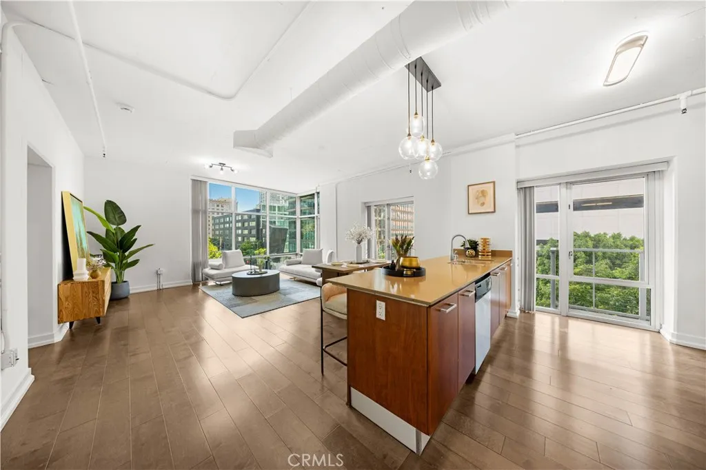 This amazing rare corner residence offers expansive southwest-facing floor-to-ceiling windows that flood the home with natural light. The elegant interior features wide-plank hardwood flooring throughout, an open-concept layout, and a sleek kitchen appointed with Ceaserstone quartz countertops, a Whirlpool five-burner gas range, stainless steel appliances, and in-unit washer/dryer. 2 generously sized, gated side-by-side parking spaces are included. Market Lofts provides 24-hour concierge service, ensuring security and seamless package and delivery management. Amenities include a resort-style pool, 20-seat private screening room, fitness center, clubhouse, and BBQ area. Ground-level conveniences include Ralphs, Coffee Bean, and more. Ideally located within walking distance to Whole Foods, LA Live, The Bloc, fine dining, and upscale retail. Experience refined urban living in the heart of Downtown LA.