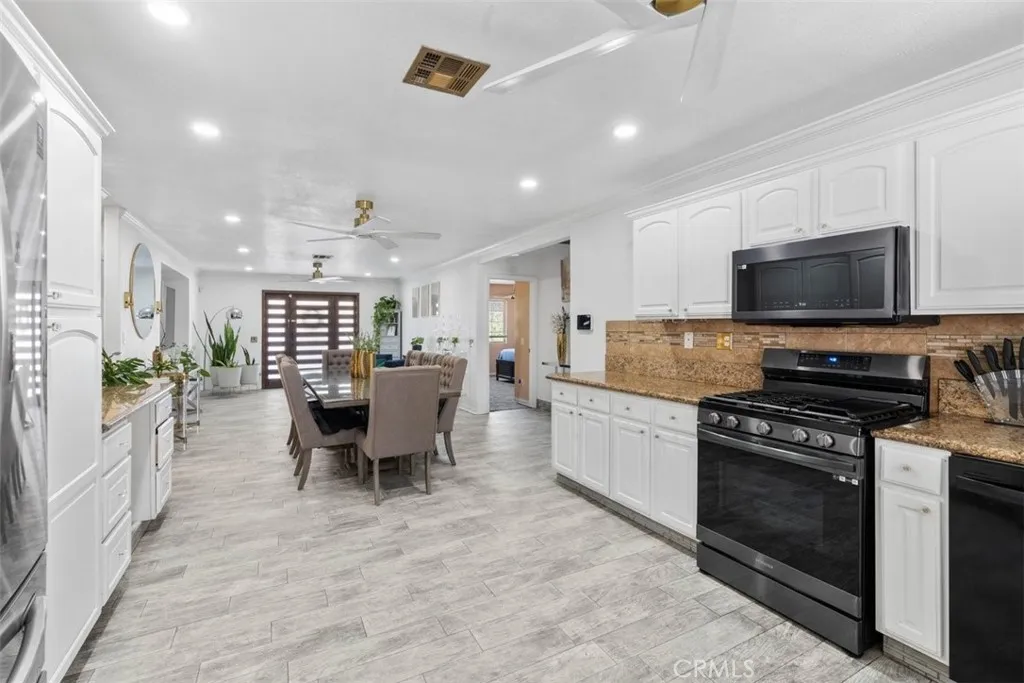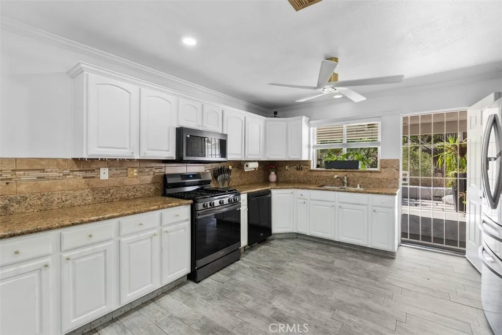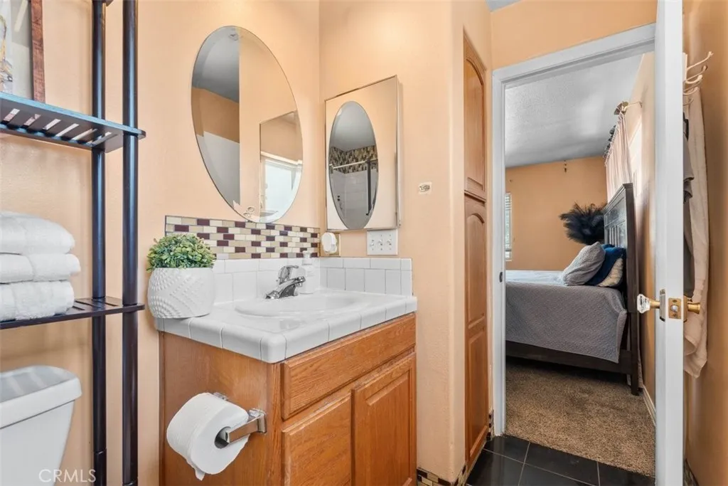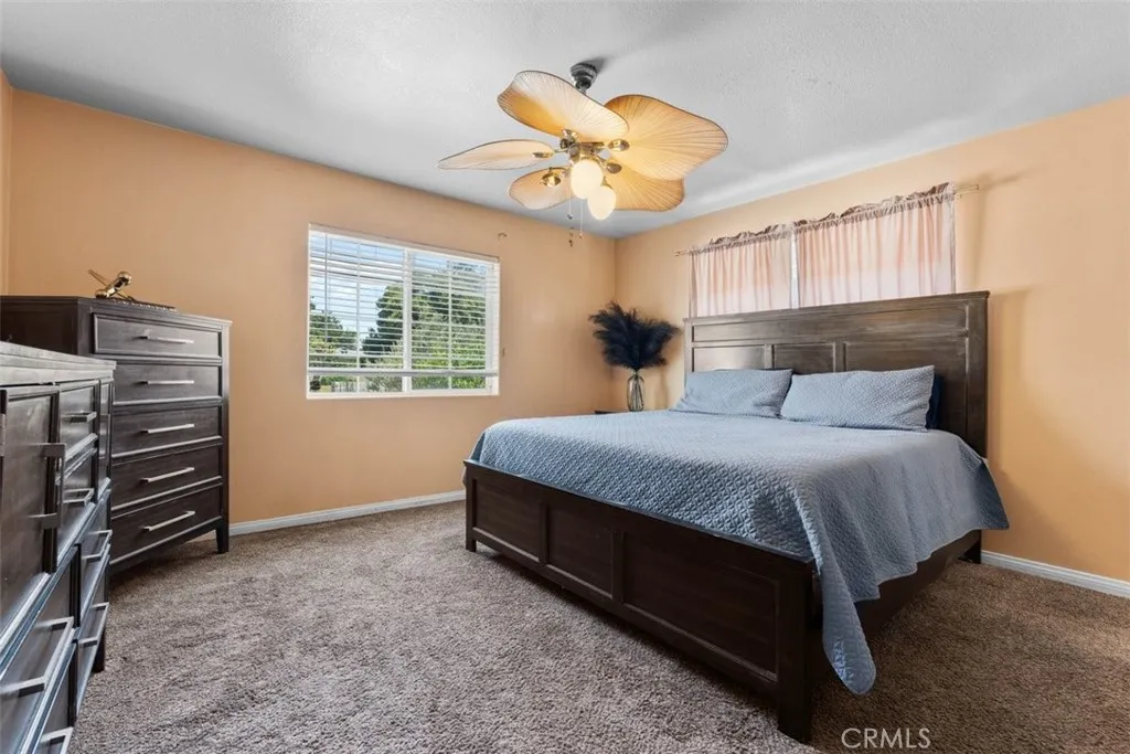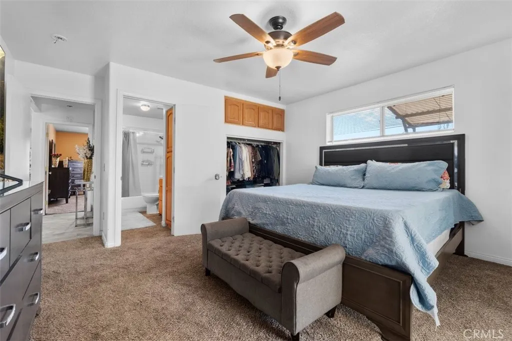 "Welcome home to this remarkable San Bernardino property! Located on a desirable corner lot, this house offers charming curb appeal and a significant upgrade: solar panels. Inside, you'll discover the warmth of beautiful wood tile flooring flowing through most of the home, leading to a modern, open floor plan that embraces comfortable living. The living room flows seamlessly into a well-appointed kitchen, a true chef's delight with granite countertops, upgraded finishes, and extensive counter space. This residence offers four spacious bedrooms; two include private, bathrooms, while the other two share a practical Jack and Jill bath. You'll find unparalleled convenience with two attached 2-car garages and an enormous RV parking area perfect for all your vehicles, recreational vehicles, and outdoor gear. The backyard is designed for relaxation and enjoyment, featuring a covered patio for outdoor gatherings and a separate garden area adorned with a delightful assortment of fruit trees and plants like geranium, Meyers Lemon, Key Lime, Cherry, Apple, Fig, Pomegranate, and Peach. A sizable storage shed provides additional utility. Situated on a peaceful street yet offering quick access to freeways, this home provides a desirable lifestyle. Don't miss the opportunity to make it yours!"