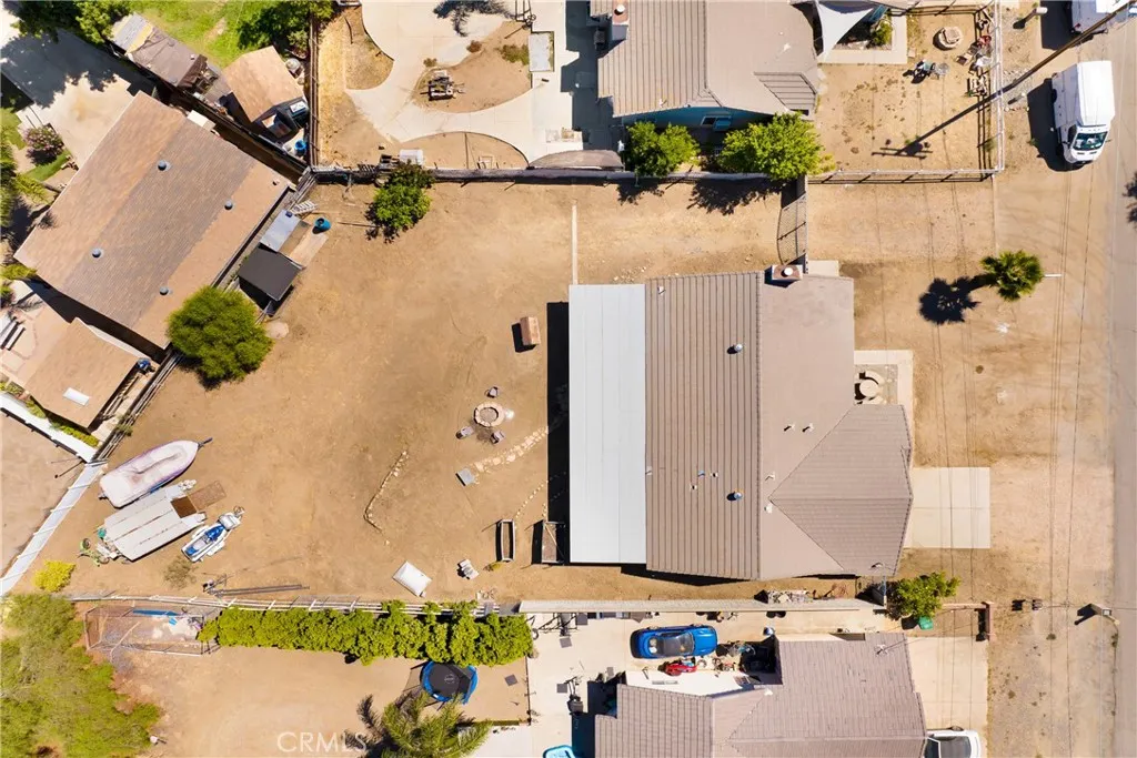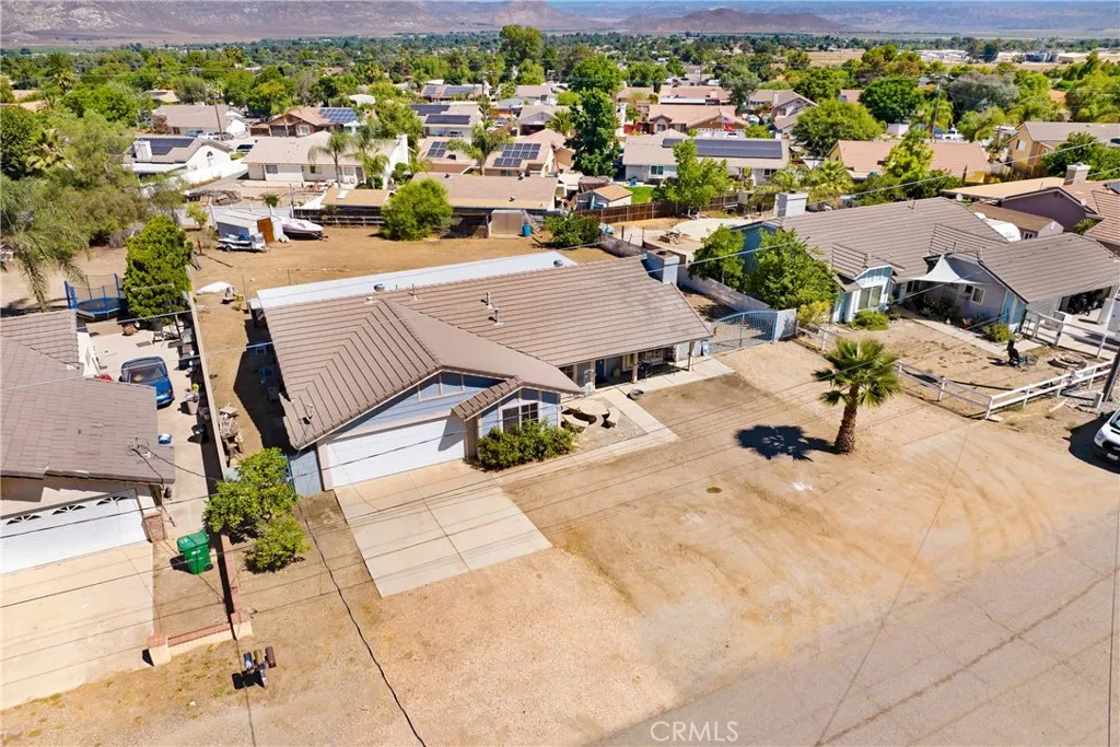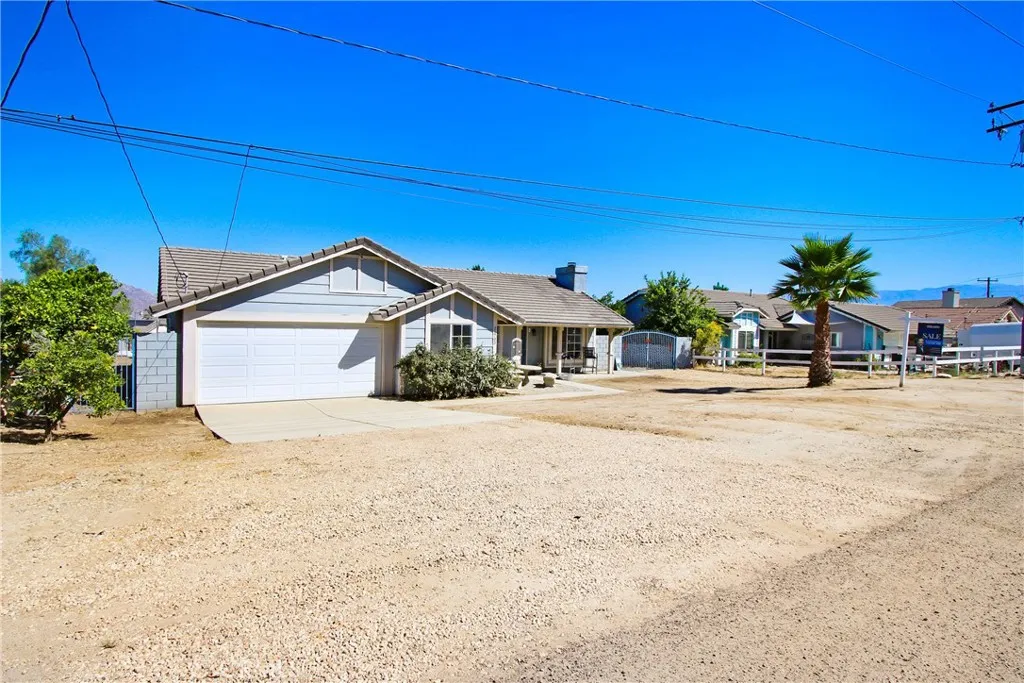 Discover this beautifully remodeled 4-bedroom, 2-bathroom single-family home, perfectly situated on a spacious lot along a private paved street in the charming community of Nuevo, CA. This turnkey residence boasts a bright great room floorplan with high ceilings, recessed LED lighting, and a ceiling fan, complemented by new European Oak-style LVP flooring and large modern baseboards throughout. The expansive kitchen features an oversized island with butcher block counters and bar-top seating, paired with sleek stainless steel appliances, ideal for entertaining. Relax by the fireplace in the inviting family room, designed for comfort and connection. Three well-sized bedrooms include ceiling fans, while the remodeled hall bathroom showcases a white shaker vanity with a white quartz top, new faucet, toilet, light, and mirror. The large primary bedroom offers direct access to the backyard patio and an en-suite bathroom with dual sinks. Additional conveniences include an office area adjacent to the bedrooms, an indoor laundry room with overhead cabinets and a custom iron gate for large RV parking. The fully fenced backyard, complete with a large shed and a solid patio cover spanning the length of the home, offers endless possibilities for livestock, a pool, ADU, or personalized outdoor retreat. It also has room for all of your gardening and farming plans - current plantings include pomelo, tangelo, blood orange, and mylar lemon trees. Nuevos small-town vibe and tight-knit community create a welcoming, relaxed environment, with proximity to highly rated award winning schools and