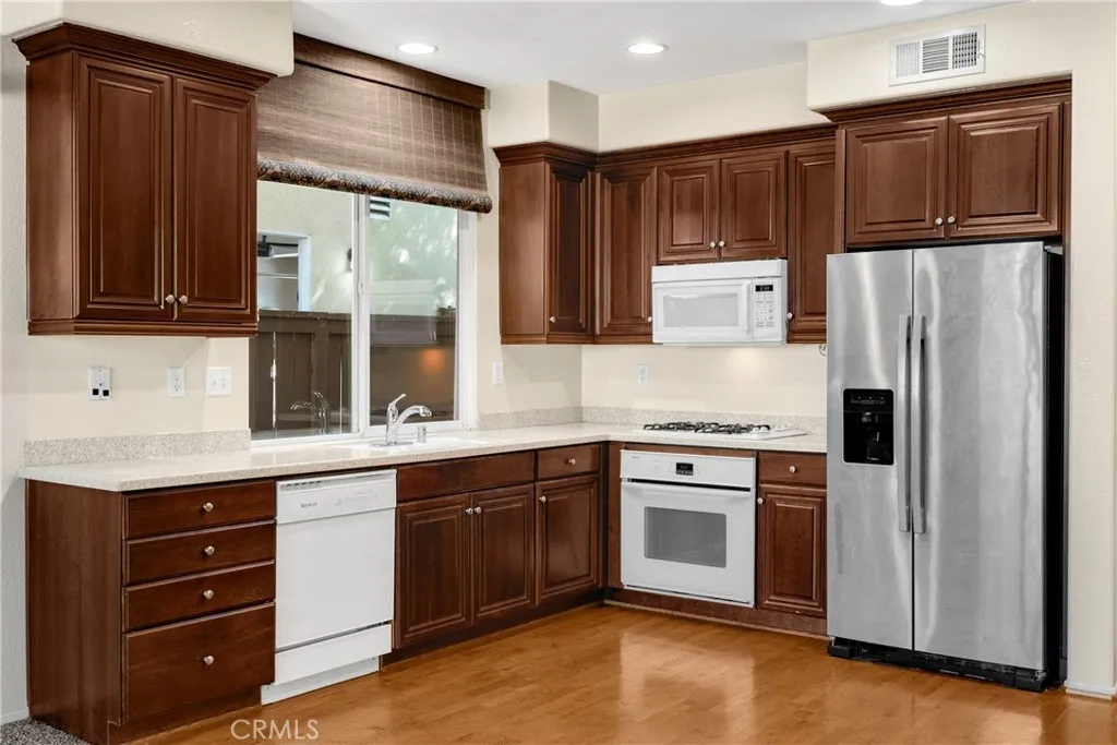 Don't miss your Opportunity to Own this Former MODEL Home Located in the SUNNYMEAD RANCH COMMUNITY Walking Distance to Lake & Resort Style Amenities! Amazing Floorplan SHOWS & FEELS like a SINGLE STORY home with the Majority of the Living Area on the MAIN LEVEL - Including the PRIMARY BEDROOM with EN-SUITE BATHROOM as well as a Secondary Bedroom & FULL BATHROOM! Front Entry with Covered Front Porch Welcomes you into the Living Room & Formal Dining Room with Custom Window Coverings & Niche for Dining Hutch. A Double Door Entry Leads into a DEN/OFFICE with Beautiful Built in Cabinetry (possible 4th Bedroom!). Kitchen is Open to the Family Room and Features Under Cabinet Lighting, Plenty of Storage & Countertop Space as well as room for an Island or Casual Dining. Family Room has Vaulted Ceilings with Loft View, Built-in Entertainment Center, Cozy Fireplace and Back Patio Access. Indoor Laundry Room comes with Washer & Dryer Included! Upstairs you'll find a Loft Space with Built in Entertainment Center and 2 Desk Spaces as well as another Bedroom with Generous Walk-in Closet & Full Bathroom! Amazing Hillside Views can be Enjoyed from several rooms of the home. Just a short walk to the Community Lake as well as the Lake Club Featuring Several Sports Courts, Pool & Spa, Gym, Clubhouse, Fishing & Community Activities for a SUPER LOW HOA of only $127!!