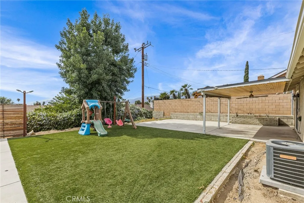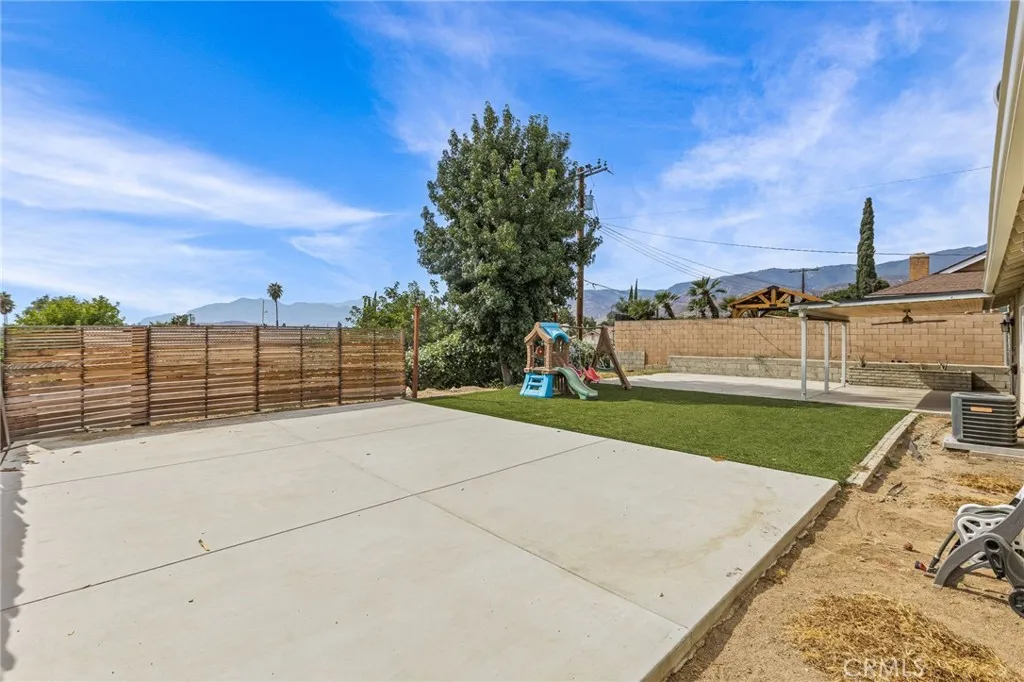 This beautifully updated corner lot home offers great curb appeal, a spacious front lawn, and ample parking. Inside, enjoy freshly painted walls, dual-pane energy-efficient windows, and a bright, updated kitchen with modern appliances, ready for your personal touch. The kitchen opens to a versatile space that can be used as a cozy family room with a fireplace and sliding glass doors leading to a covered patio. Featuring four bedrooms, including two connected by a convenient Jack and Jill bathroom, this home also boasts generous hallway storage. The finished garage, upgraded electrical fixtures, and blown-in attic insulation add comfort and value throughout. The backyard is perfect for entertaining or relaxing, with updated landscaping and plenty of space for a future pool, garden, or shed. Additional upgrades include a new patio roof, AC ducting, ceiling fans, a new water heater, and more. Located just minutes from Yaamava Resort & Casino, the 210 freeway, and nestled on a quiet, pride-of-ownership street, this home is a must-see!