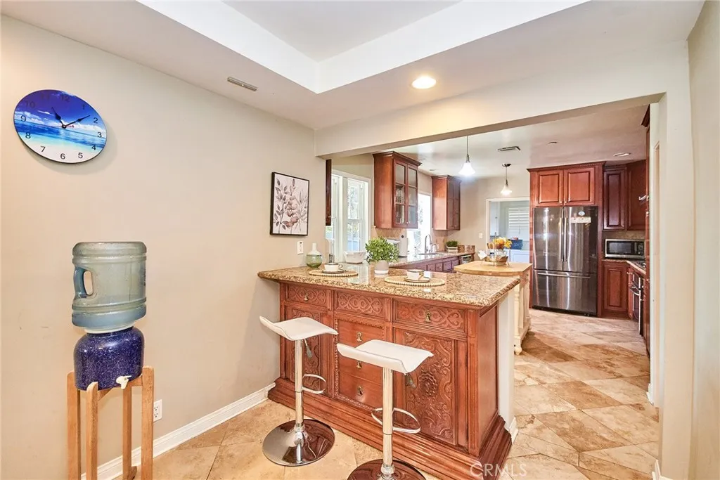 784 Eaton Drive in Pasadena is a beautifully remodeled and expanded single-story 5-bedroom, 3-bathroom home in the sought-after Daisy Villa neighborhood. Originally built in 1947, a major 2015 addition and full renovation expanded the home on a generous 12,223 sqft lot. Upgrades include paid-off solar panels, dual-pane vinyl windows, and wood flooring throughout. A welcoming foyer opens to a bright living room with a cozy fireplace, while the chefs kitchen features granite countertops, stainless steel appliances, a breakfast bar, custom cabinetry, and a charming garden window. The front wing offers a junior en suite, two additional bedrooms, and a full bath. The addition includes a spacious family room with a large bifold glass door opening to the backyard, a fourth bedroom, and the primary suitecomplete with ample closet space and an updated bath. All bathrooms are tastefully renovated. A gated driveway leads to a detached 3-car garage, with an ADU design concept plan for a future unitideal as an in-law suite, guest quarters, or rental income. Conveniently close to the 210 Freeway, Whole Foods, Trader Joes, The Home Depot, Amazon Fresh, Target, Sunnyslope Park, and Gwinn Park. The backyard offers a serene setting for entertaining, gardening, or relaxing with beautiful mountain views.