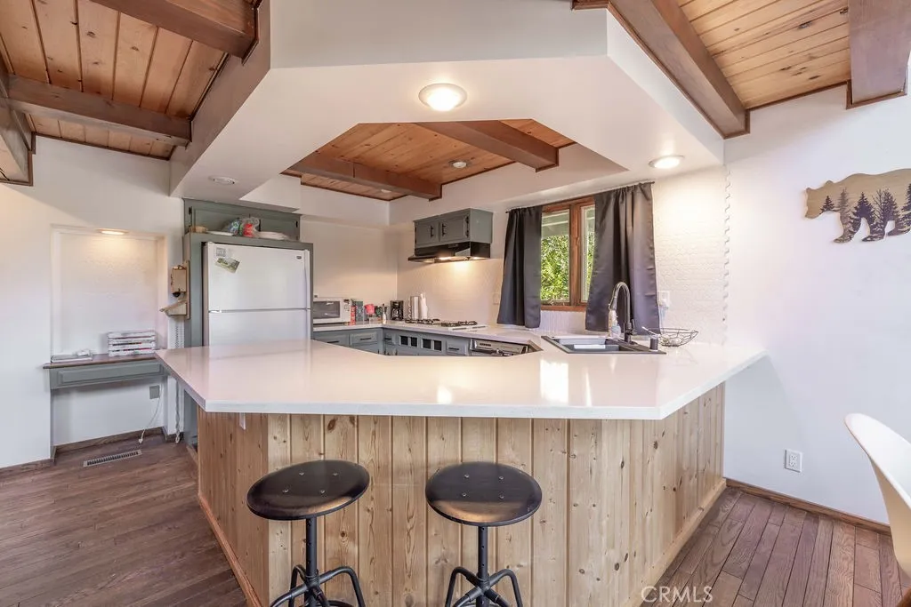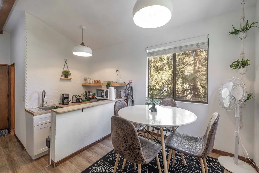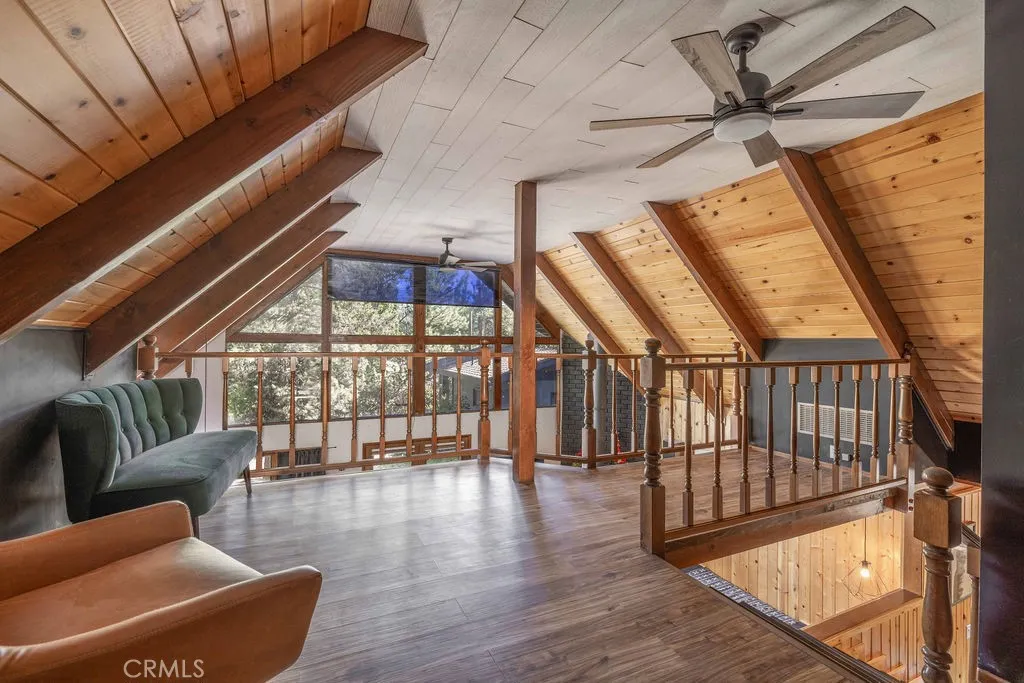 GORGEOUS CUSTOM CHALET + ADU IN WHISPERING FOREST, AT A SWEET PRICE! The Walk and Drive Score on this one is EXCELLENT! Within 0.3 miles (8 minute walk) from the National Forest at the end of the street, 1.7 miles from the lake, and approximately 1 mile from year-round fun at the Convention Center (Oktoberfest, Wyatt's, Farmer's Market), trailhead to the new paved pedal path and boardwalk through the Stanfield Marsh Wildlife and Waterfowl Preserve, Big Bear Snow Play and Raceway (go-carts), and diningthe location of this cabin is so great, and short-term rental guests rave about it too! Situated on a large corner lot surrounded by mature trees and shrubs, with plenty of parking space including a wraparound driveway and a 2-car garage. Above the garage is a spacious ADU with an updated kitchenette, dining area, bedroom and bathroom. In the main cabin, the great room boasts a wall of windows, vaulted wood and beam ceilings, a super cool mid-century modern wood burning stove surrounded by an extra long brick hearth offering additional seating. Game night or mealtime, from the living room to the kitchen and open dining, enjoy the convenience of getting to stay connected with your loved ones! Or enjoy a break and retreat to the upstairs loft with its library-like shelving, or to the master suite! Downstairs on the main level, there is another spacious bedroom with a lovely "reading nook", and a huge bathroom. Outside there is plenty of space to lounge, including a relaxing and private hot tub to enjoy peaceful mornings or evening stargazing! Whether you're seeking your own slice