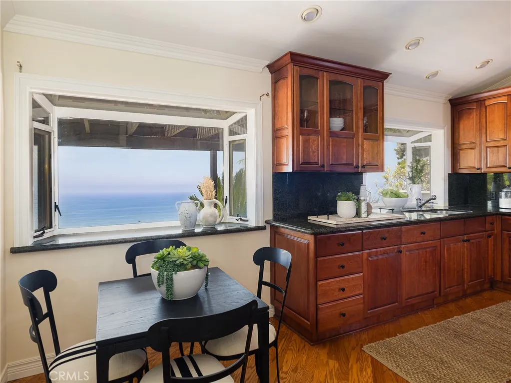 Welcome to this exquisite residence residing in Palos Verdes with sublime Pacific Ocean views touched by outstanding Peninsulas. Double-door entrance swings open to massively vaulted ceilings that welcome you to a vibrant front foyer with large seating. The house rises up to a formal dining area that glides into the gourmet kitchen that is enveloped with views. Thermador appliances complement the incased wood refrigerator and vent systems that completely blend with the surrounding cabinetry. The desirable wood accents continue into the flooring that lead to custom Pella doors that exhibit one of the best views the county of angels offers. Breathe taking picturesque oceanic views that completely encompass our little island, Mira Catalina. The yard is hugged by smooth stucco, Palos Verdes stone, custom BBQ, finished planters, and continued space for roaming in the grassy knoll, all while basking in the blue hues. The terrain transcends towards a wonderful deck, that finishes this experience. Jetting out off of the cliff and into the surrounding hillside is something to remember, being one of the only homes with this asset. Capturing pleasant up-drafts of atmospheric wind, world renown golf courses, Terranea resorts, immaculate Peninsulas, and cascading ocean air. 3-car garage. Sought-after award winning Palos Verdes Peninsula school systems are all welcomed to be enjoyed.