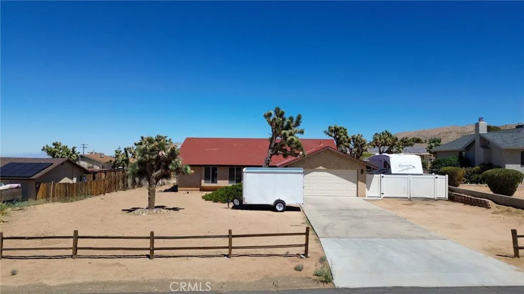Welcome to this beautifully maintained 3 bedroom, 2 bath home sits on a large 0.41 acre lot in Western Hills Ranchos with stunning mountain views. Enjoy an open floor plan with bright living spaces and a spacious kitchen with bay windows. The fenced backyard is ideal for entertaining and outdoor living, featuring dedicated RV parking with full hookups, perfect for RV enthusiasts or extra storage. An attached 2-car garage and indoor laundry add convenience. Close to schools, shopping, and just minutes from Joshua Tree National Parkthis home offers space, comfort, and the perfect desert lifestyle! Don't miss this opportunity!