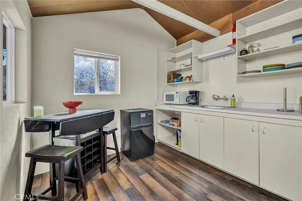 Panoramic views will have you gazing at the water from this Jago Bay lakefront property. It is an ideal vacation rental, second home, or primary home with rental income. The main house has 2 bedrooms and 1 bathroom upstairs, and a bedroom and bathroom downstairs with its own entrance. That downstairs room and bathroom would make an excellent guest room or art studio. New vinyl plank flooring installed in both units in 2024. The main house also has a new fridge and TV. A covered deck overlooking the lake provides a lot of room for outdoor living. The guest room downstairs has its own separate entrance on the side of the house and is not accessible from the upstairs. Down the hill on the lakefront is a small guest unit with kitchenette, 1 bedroom and 1 bathroom; this unit has been previously rented for $700/month. These properties come furnished and ready to use. The room count and square footage is combined for all 3 units. Jago Bay is a small enclave of mostly second homes on the south end of Clear Lake, and this home is in the community of Crescent Bay, which has optional membership for $300/year to the community beach with picnic area and community dock. This is a great community for summer boating, paddle boarding, kayaking over to Anderson Marsh, nearby hiking trails and nature activities at Boggs Mountain State Forest, Anderson Marsh State Park, or Clear Lake State Park. Live here and fish, watch the birds and gorgeous sunsets, and find the closest place to paradise in Northern California.