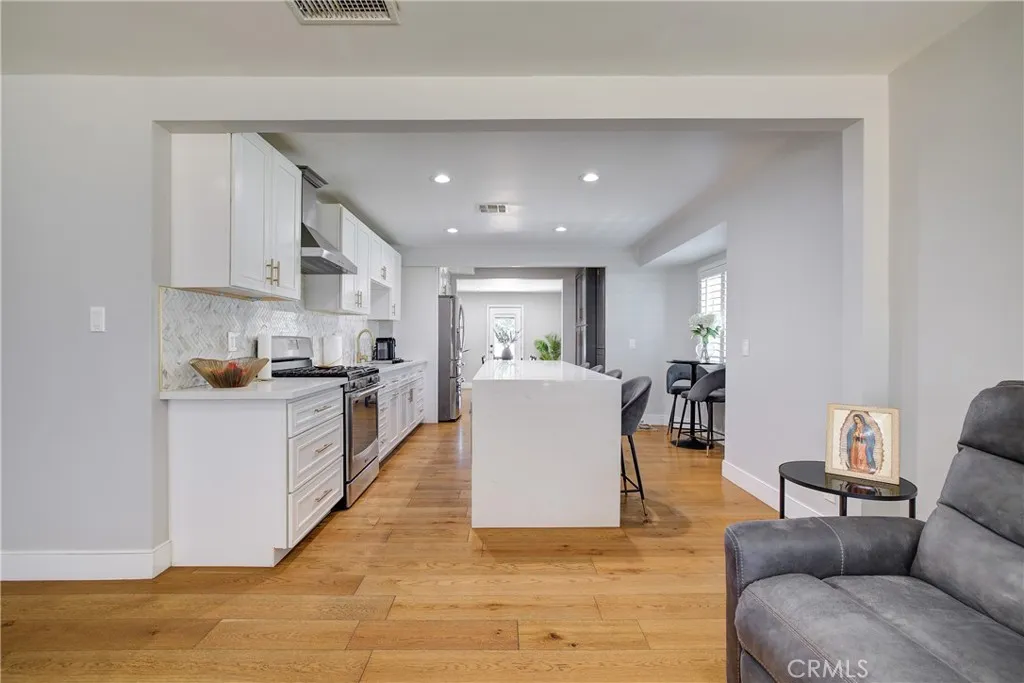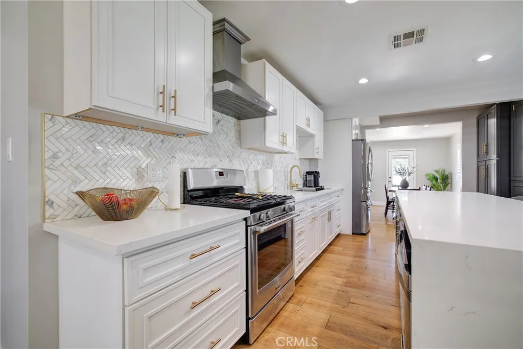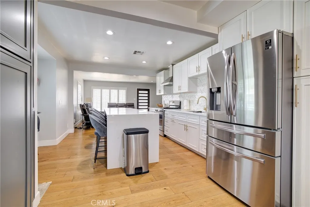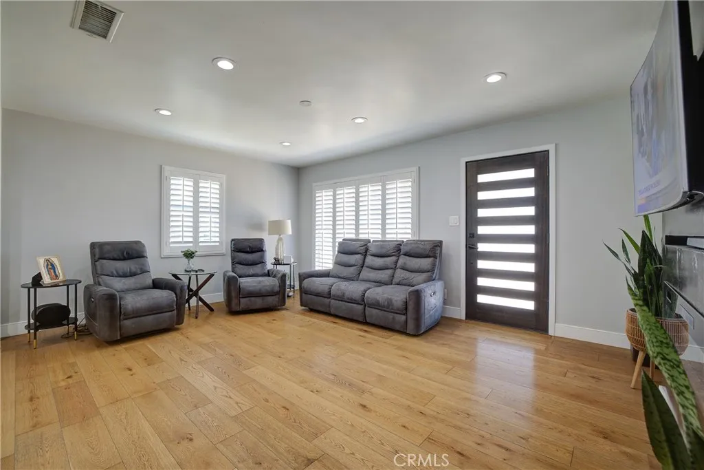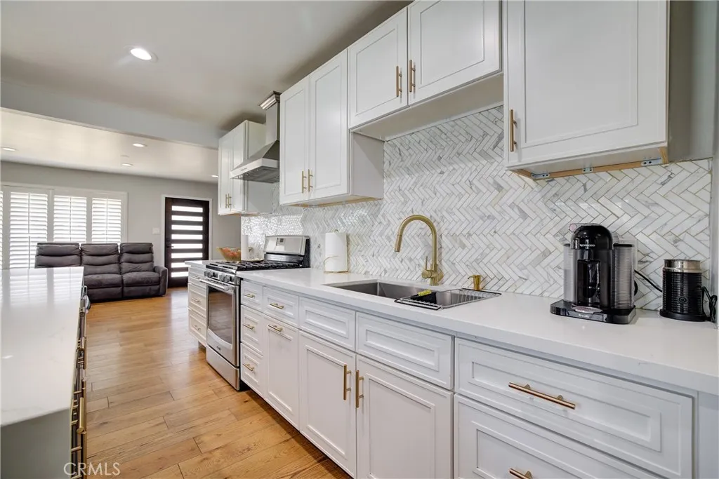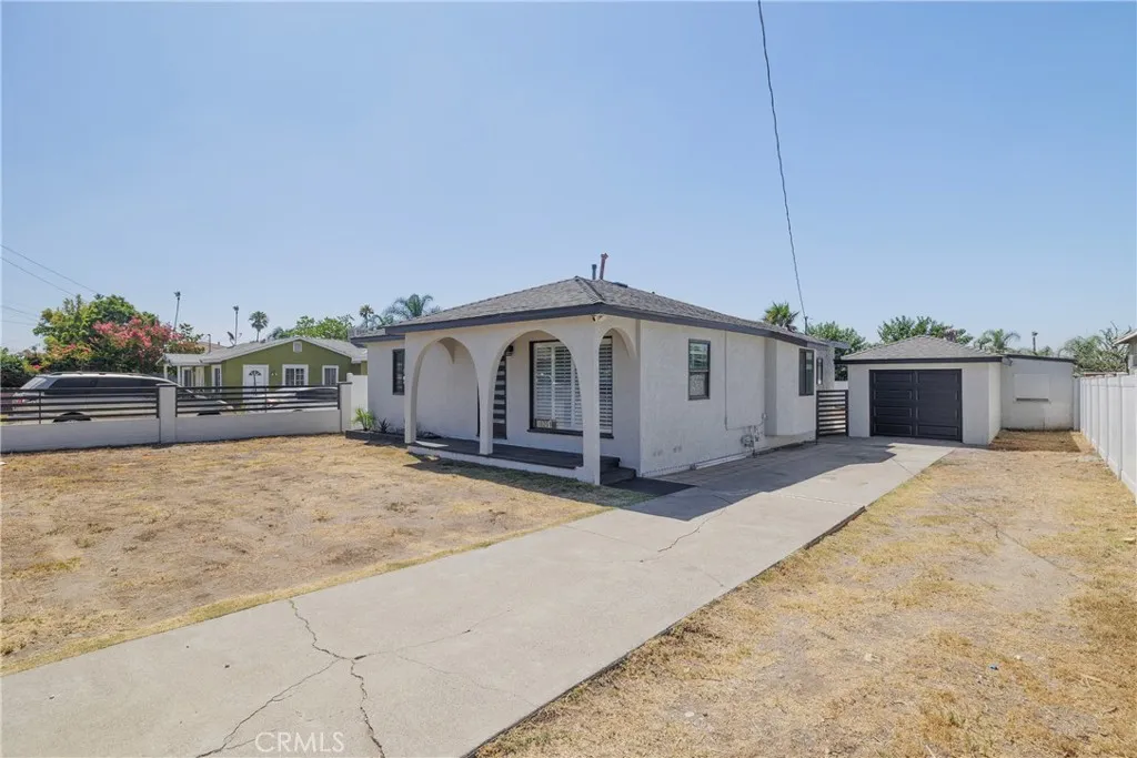 This charming, beautifully remodeled three-bedroom, two-bathroom property is a gem waiting to have someone call it home. As you walk through the front door, you enter a spacious living room with a large window to give plenty of natural light. There is engineered hardwood flooring throughout the house. The master bedroom has a private bathroom, a walk-in closet, and a door that leads to the spacious backyard. The second and third bedrooms both have closets with built-in drawers. The kitchen area is spacious, with room for an island and a dining area. The backyard is an excellent space for entertaining, offering numerous possibilities. There is also a large orange tree that gives an abundance of fruit. The long driveway allows for ample parking for yourself and guests, along with a single-car garage. The garage has a vehicle door on both sides, allowing you to pull through if needed and store a boat, trailer, or other vehicles. Behind the garage is a large structure that could be used for storage, office space, or other purposes. This storage area has so much potential and is already hooked up with electricity and a sink with running water.
