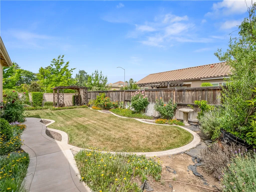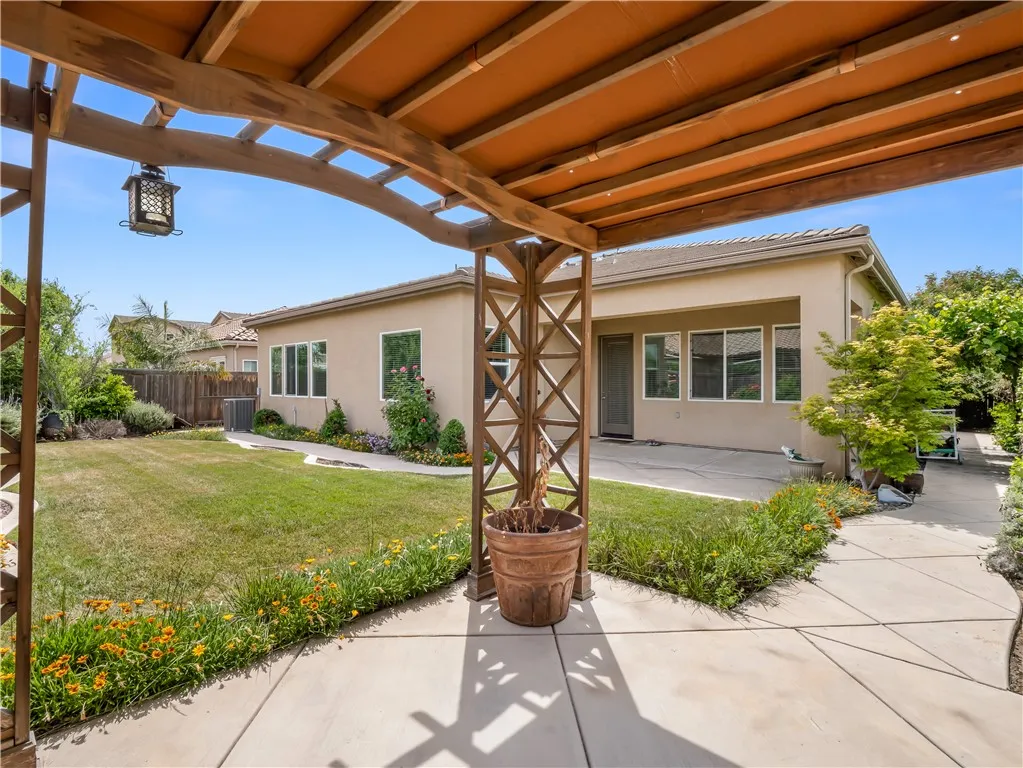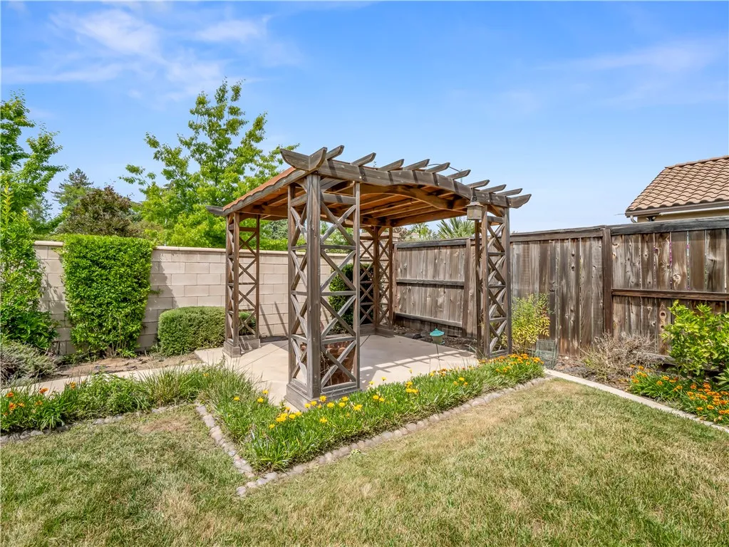 Situated in the heart of it all, this stunning De Young home offers unbeatable access to top shopping centers, popular restaurants, and everyday essentials. Convenience truly surrounds you with this property! Located within the highly sought-after Clovis Unified School District, this move-in ready gem blends comfort and quality throughout. Inside, you'll find soaring 10-foot ceilings, a dual-sided fireplace, and an open layout perfect for both relaxing and entertaining. The chef's kitchen features granite countertops, stainless steel appliances, a functional kitchen island, and tile flooring that flows through the main living areas. Step outside to enjoy the fully landscaped backyard, complete with a peaceful gazebo and charming trellises, ideal for entertaining or unwinding after a busy day. This home checks all the boxes!