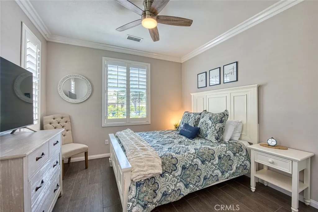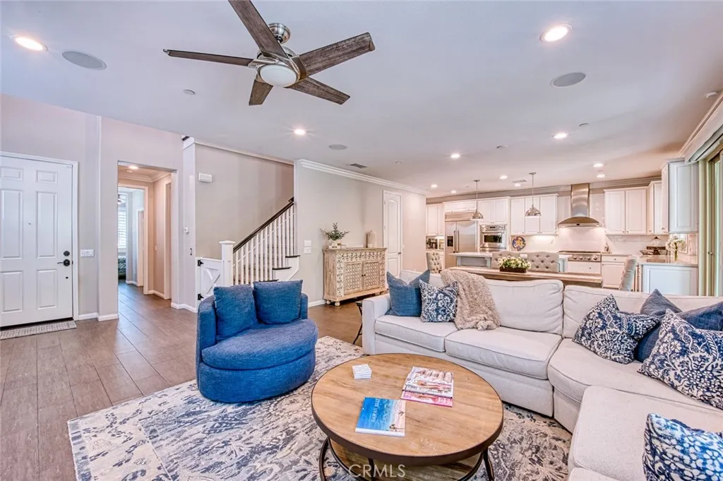 PRICE IMPROVEMENT! Nestled in the highly sought-after community of Rancho Mission Viejo, this meticulously maintained 4-bedroom, 3.5-bathroom home offers the perfect blend of comfort, functionality, and designer upgrades. Located in the charming Sendero neighborhood, this move-in ready residence features a flexible floor plan with a FULL DOWNSTAIRS EN-SUITE bedroomideal for guests or multigenerational livingplus a convenient powder room. The open-concept main living area boasts a cozy fireplace in the family room, a spacious dining area, and a chef-inspired kitchen filled with natural light. Enjoy quartz countertops, a large center island, and all stainless steel appliances to include: built-in refrigerator, 6-burner cooktop, double ovens, wine refrigerator, dishwasher and microwave drawer, in addition to a convenient walk-in pantry. Double sliding doors lead to a lushly landscaped backyard featuring a covered patio and built-in firepitperfect for relaxing, entertaining, or outdoor living. Upstairs, youll find three additional bedrooms including a spacious primary suite filled with natural light and an oversized balcony. The luxurious primary bathroom includes dual vanities with quartz countertops, gorgeous textiles, a soaking tub, oversized beautiful walk-in shower, and a large walk-in closet. A full laundry room with sink is also located upstairs for added convenience. Additional highlights include plantation shutters and crown molding throughout the home, dual-zone A/C, ceiling fans in every bedroom, PEX plumbing, new recessed lighting, full security alarm system and cam