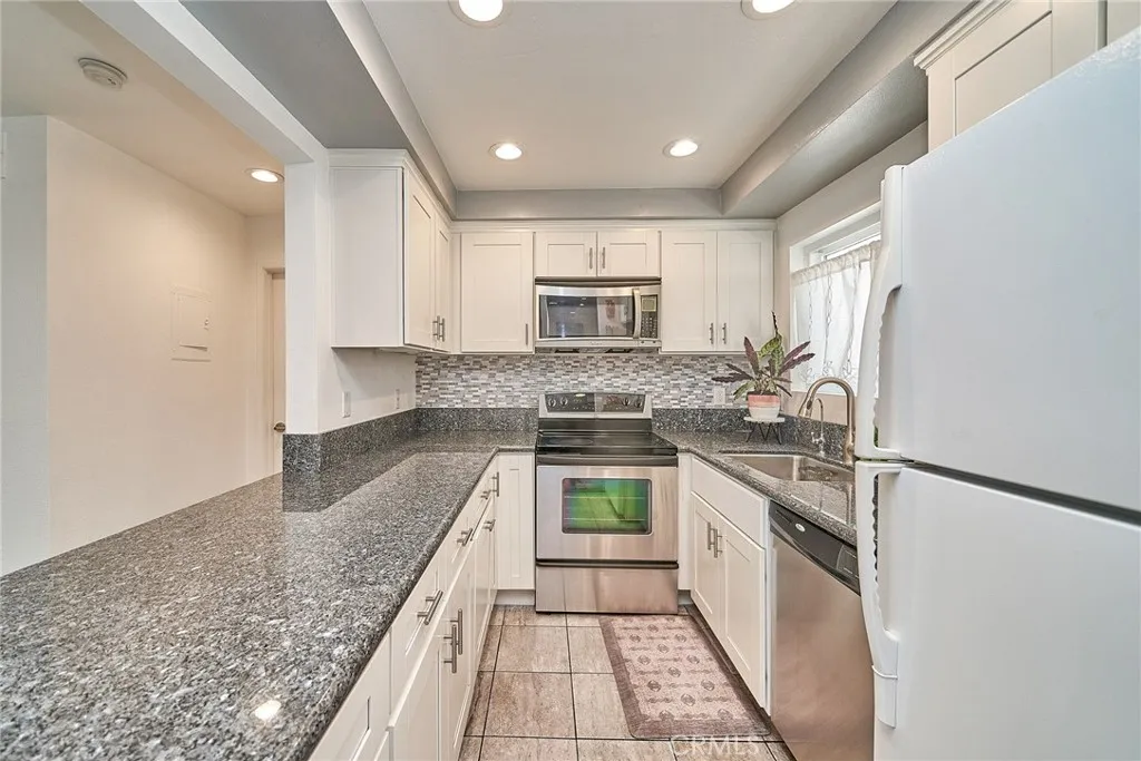 Priced To Sell! Beautiful condo in the Villa Pacifica complex! Secluded 3rd floor end unit has no shared walls, great cross ventilation, and quiet neighbors. Updated 2 BR 2 BA condo boasting a spacious bonus loft, ample closet space, W/D, balcony, double-paned windows, central AC with Nest thermostat, Ring camera and water purifier. The layout features an open floor plan with large skylights and stunning cathedral ceilings. The spacious kitchen features granite countertops with white cabinets. Unit comes with 2 lower level parking spots and subterranean storage in a friendly, multi-generational condo community with pool and low HOA. Eastside LB location convenient to shopping, park, gym, elementary school, Cal State Long Beach, and 2 mi from beach. Come see this spacious starter home before its gone!