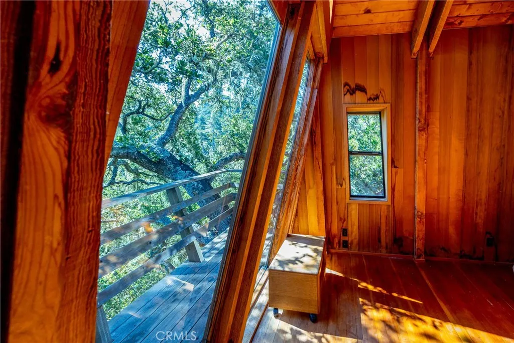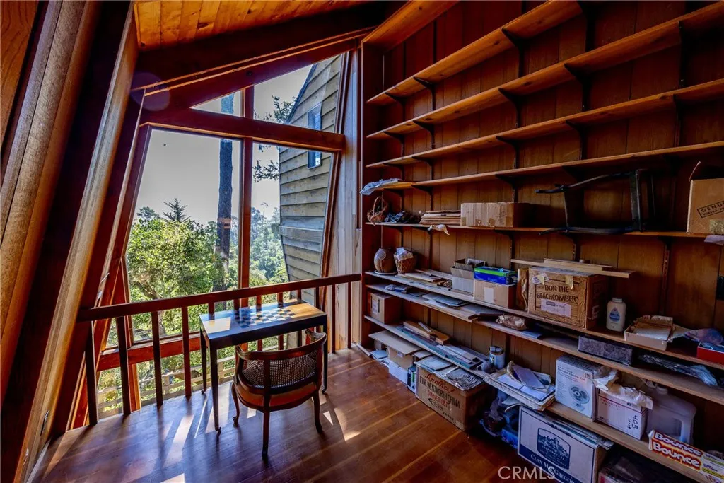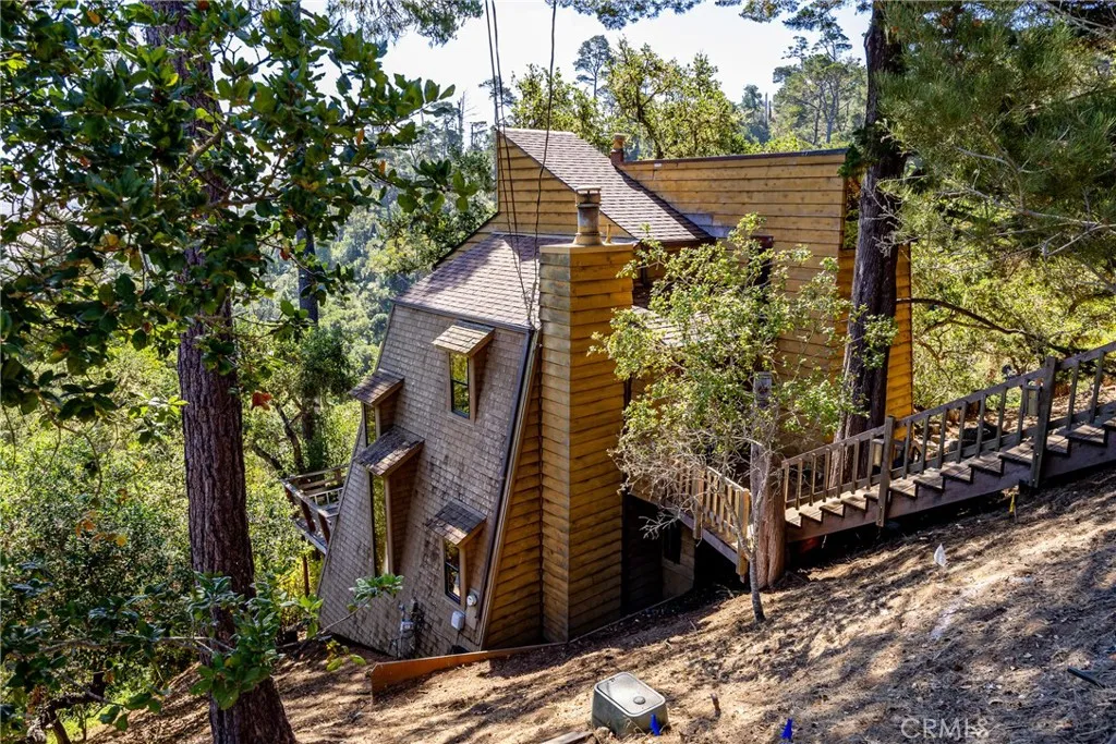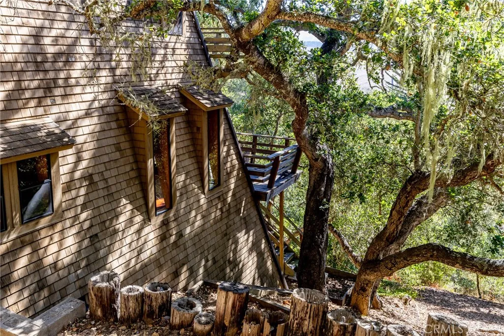 Come, enjoy this whimsical funky cool Cambria house located down this extremely private, dead-end cul-de-sac, part of which you will own! Local builder Mike McKinney constructed this house with some techniques that are reminiscent of local legend Warren Leopold. This two bedroom, 1.5 bath house backs up to 600+ acres of nature, with the trees, the birds that soar below you, and the cattle that graze slowly across the valley. The house definitely takes advantage of natural views. If you get a chance to come inside, stand in the tub/shower that hangs over the hillside.