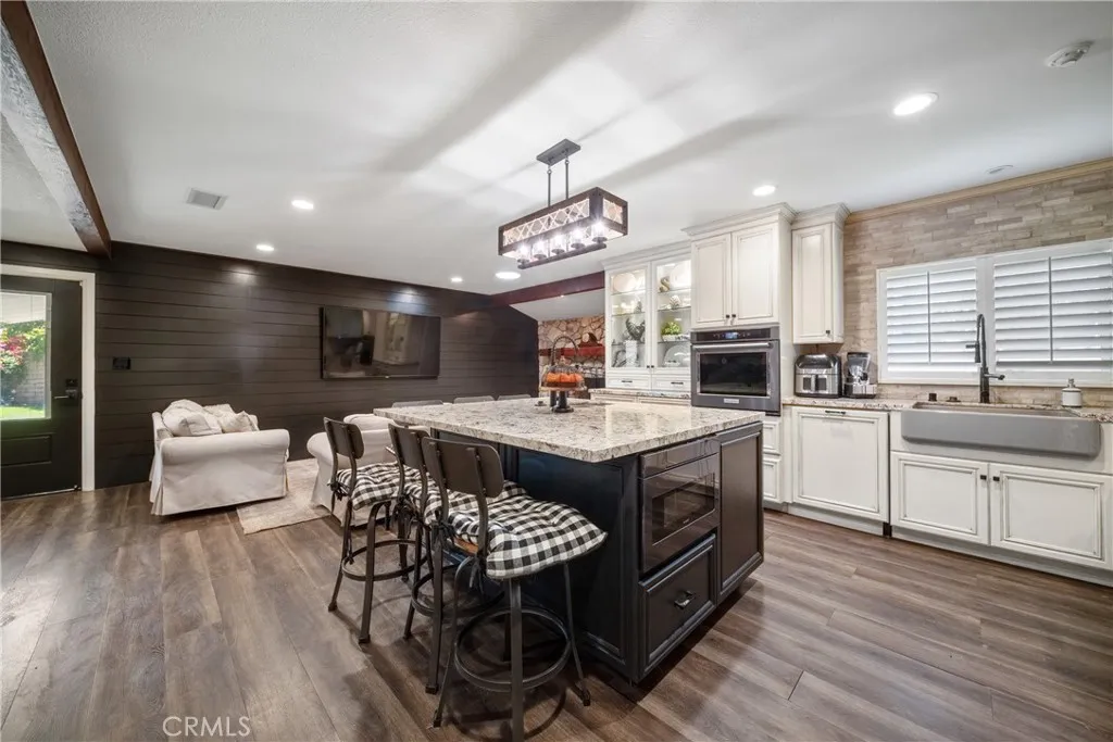 Updated 4-bedroom, 3-bath home offering over 2,000 square feet of well-designed living space. Features include luxury vinyl plank flooring, crown molding, plantation shutters, and freshly painted interiors. The open-concept layout connects the living, dining, and kitchen areas, creating a spacious and functional flow. All bathrooms showcase modern finishes. The oversized laundry room includes custom cabinetry and a built-in pet wash station. The primary suite offers a walk-in closet and en-suite bathroom. Dual HVAC systems provide year-round comfort. The exterior features a landscaped yard, garden bed, gazebo, basketball hoop, gated RV parking, and a two-car garage with built-in storage. Fully fenced for added privacy.